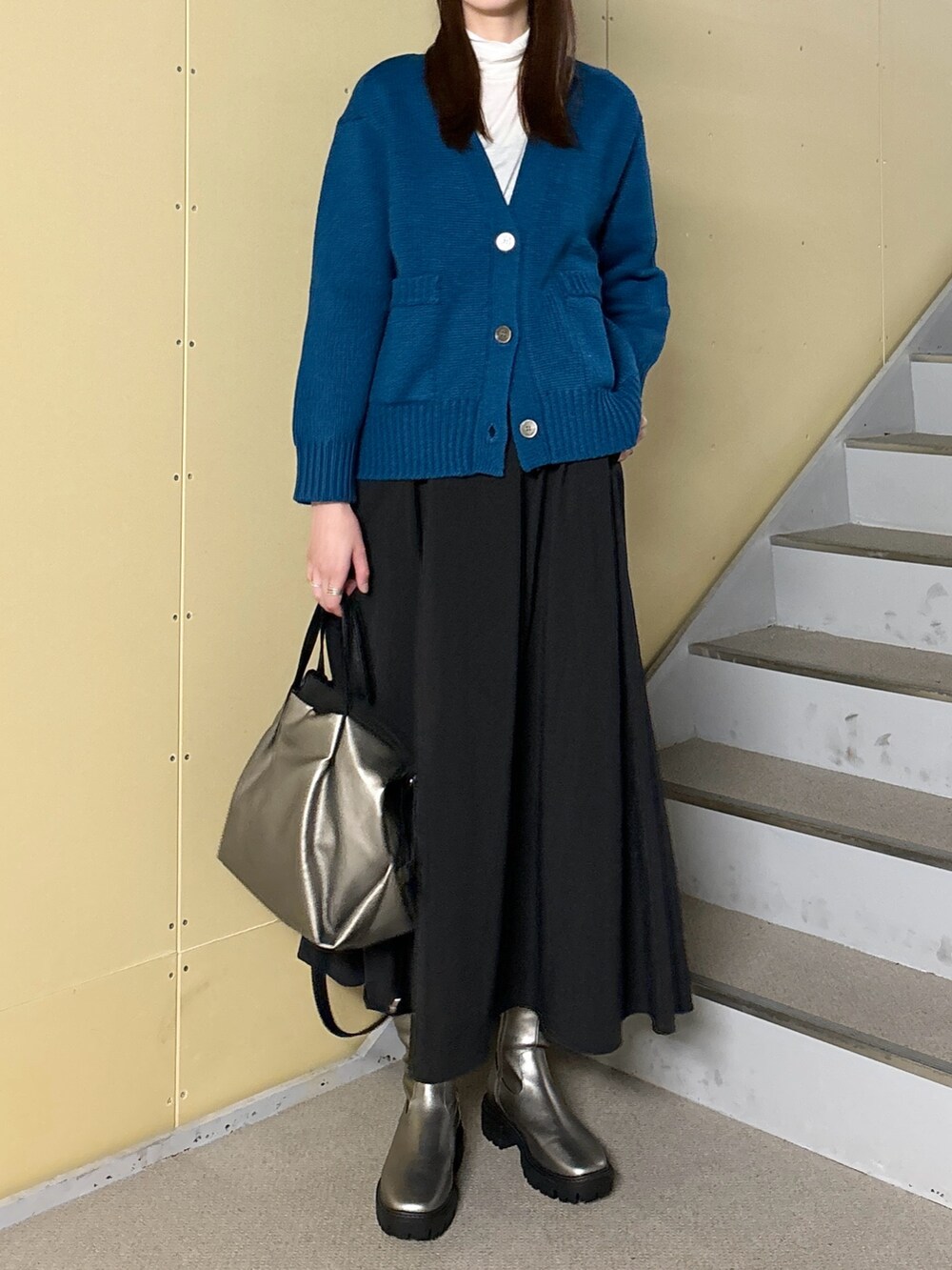 サラッとした着用感になりますが冬でもタイツを合わせてももたつかず穿ける万能スカートです!
