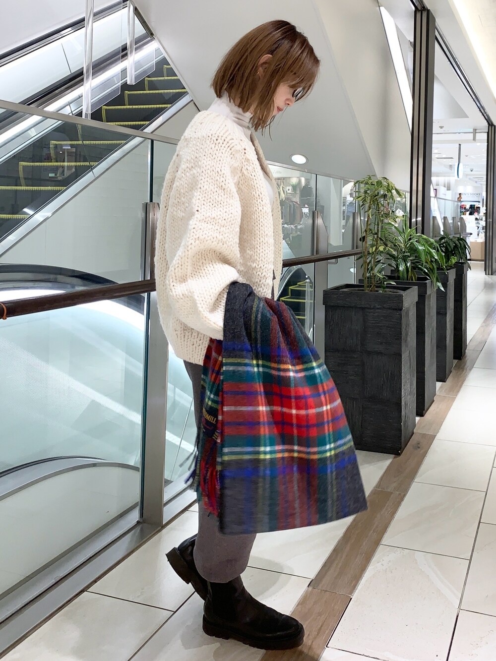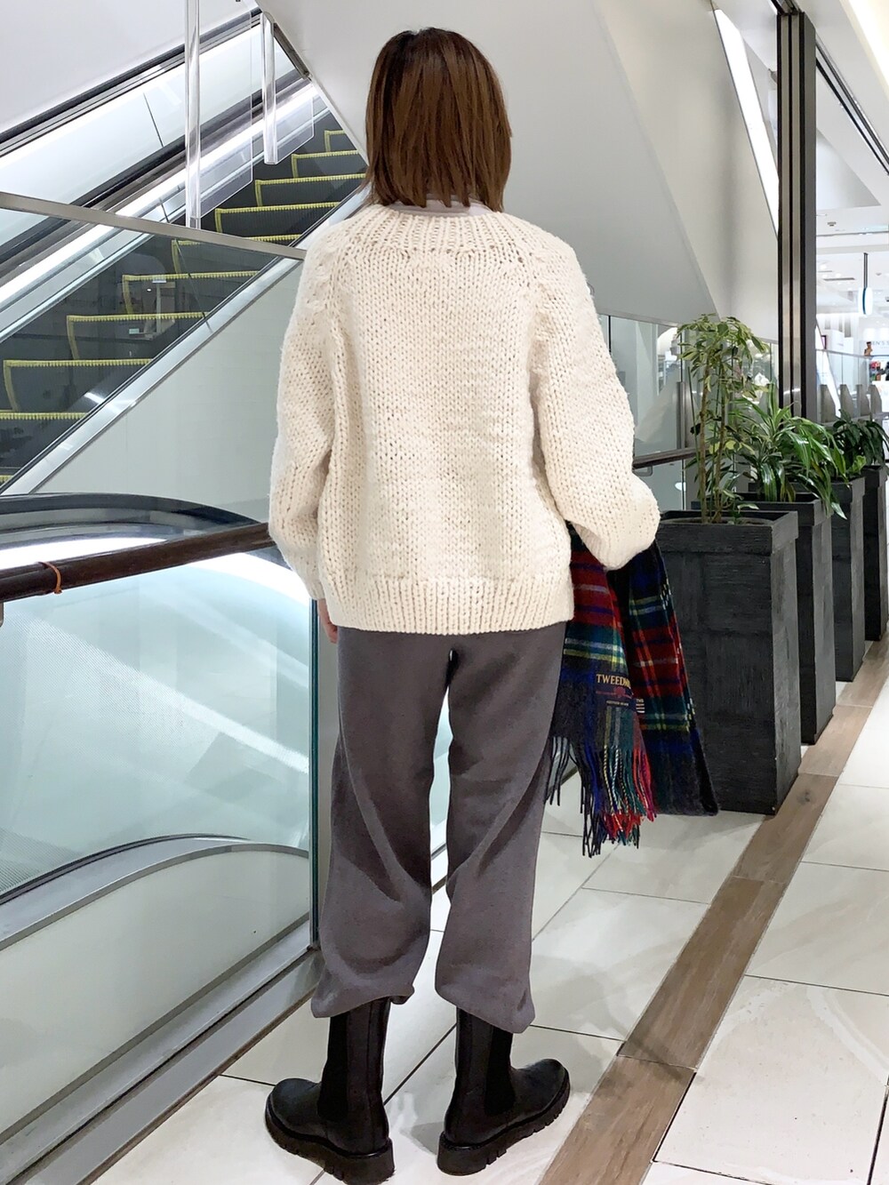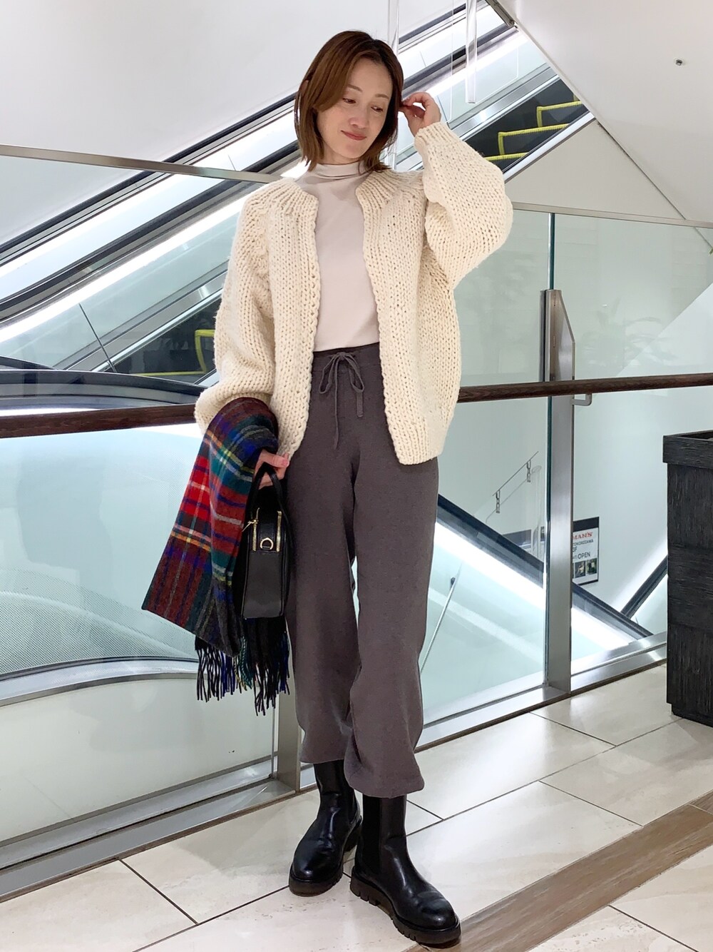 ペルーニットの可愛さ、ローゲージの厚みとはりで羽織るだけで着崩れしないので、スタイリングをしっかり見せられ着映えします😊