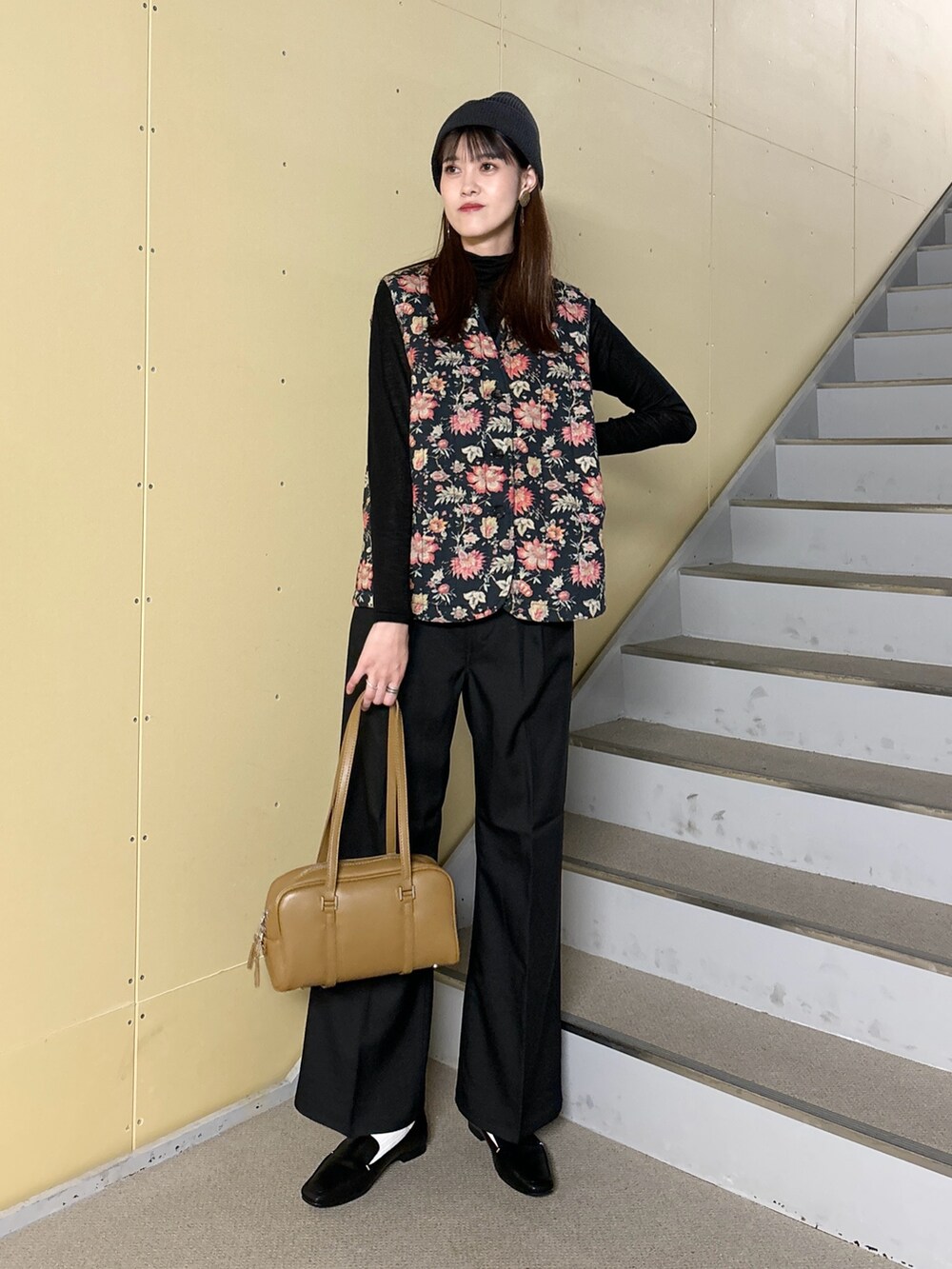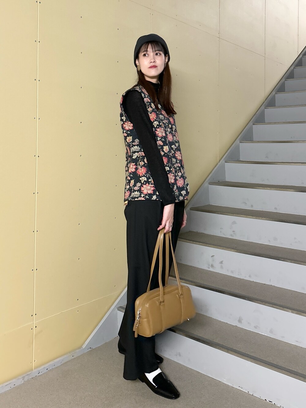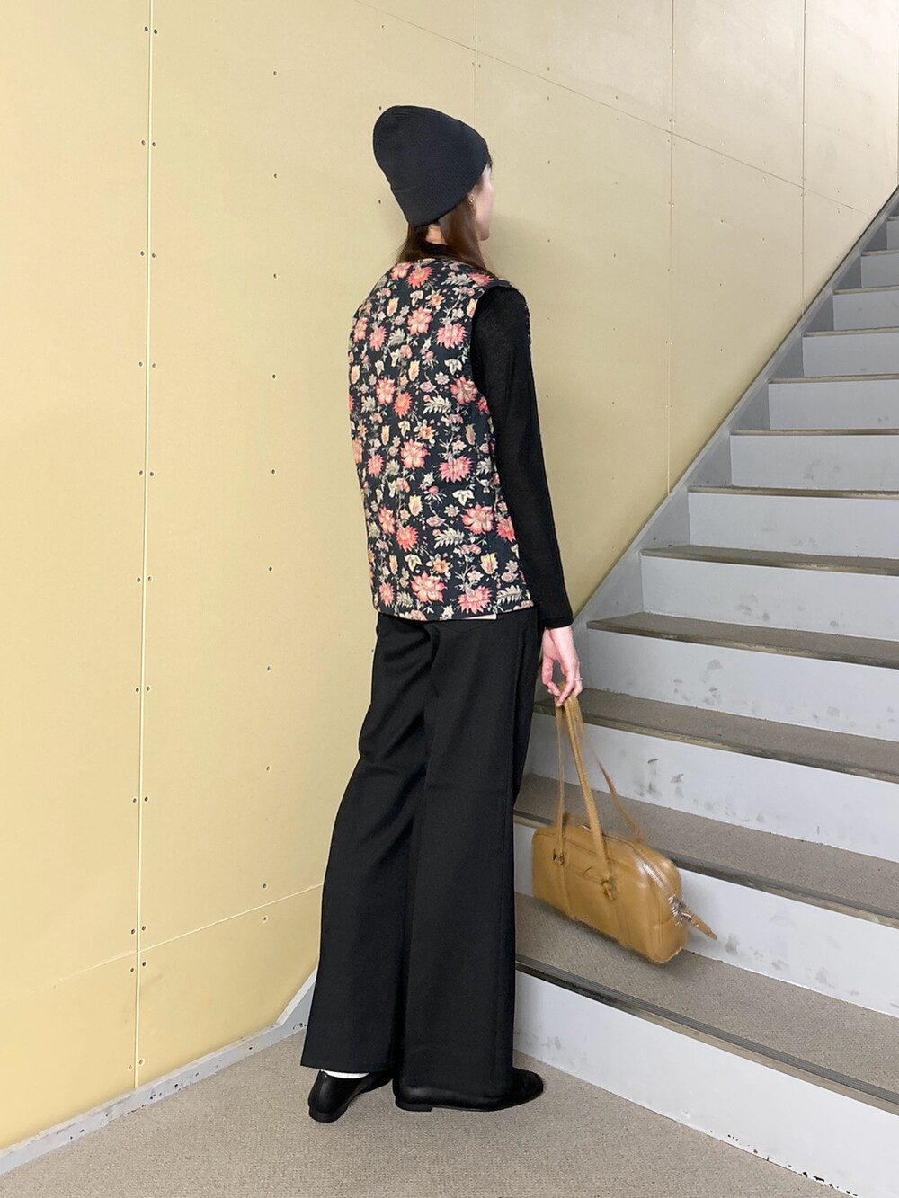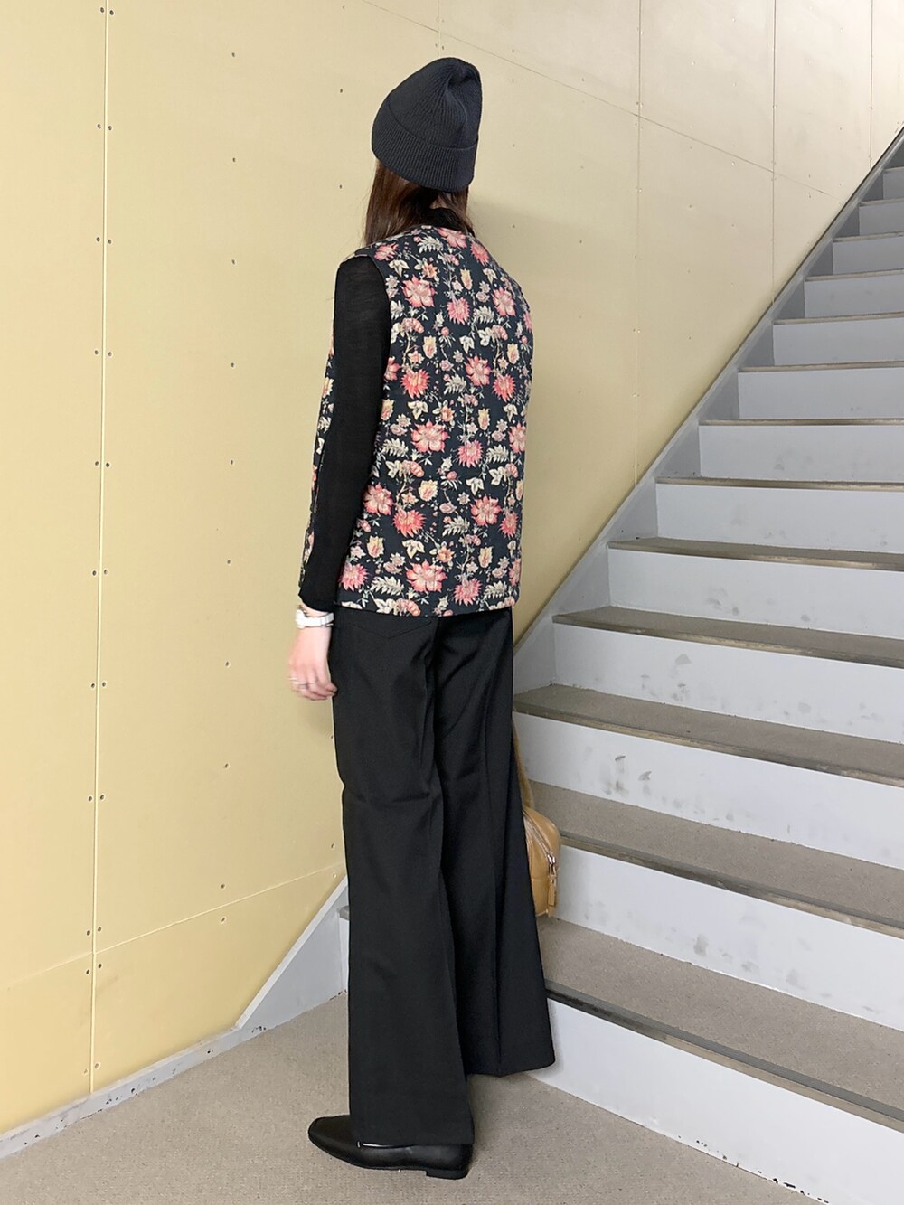 一緒に合わせたSOILのベストは柄が華やかでこれ一つで主役になります☺️