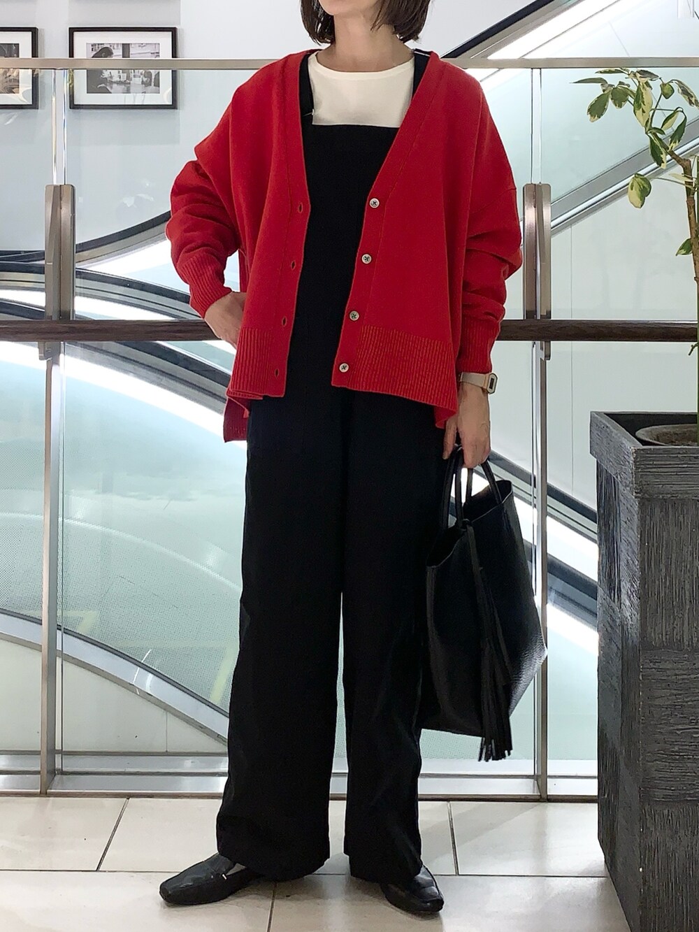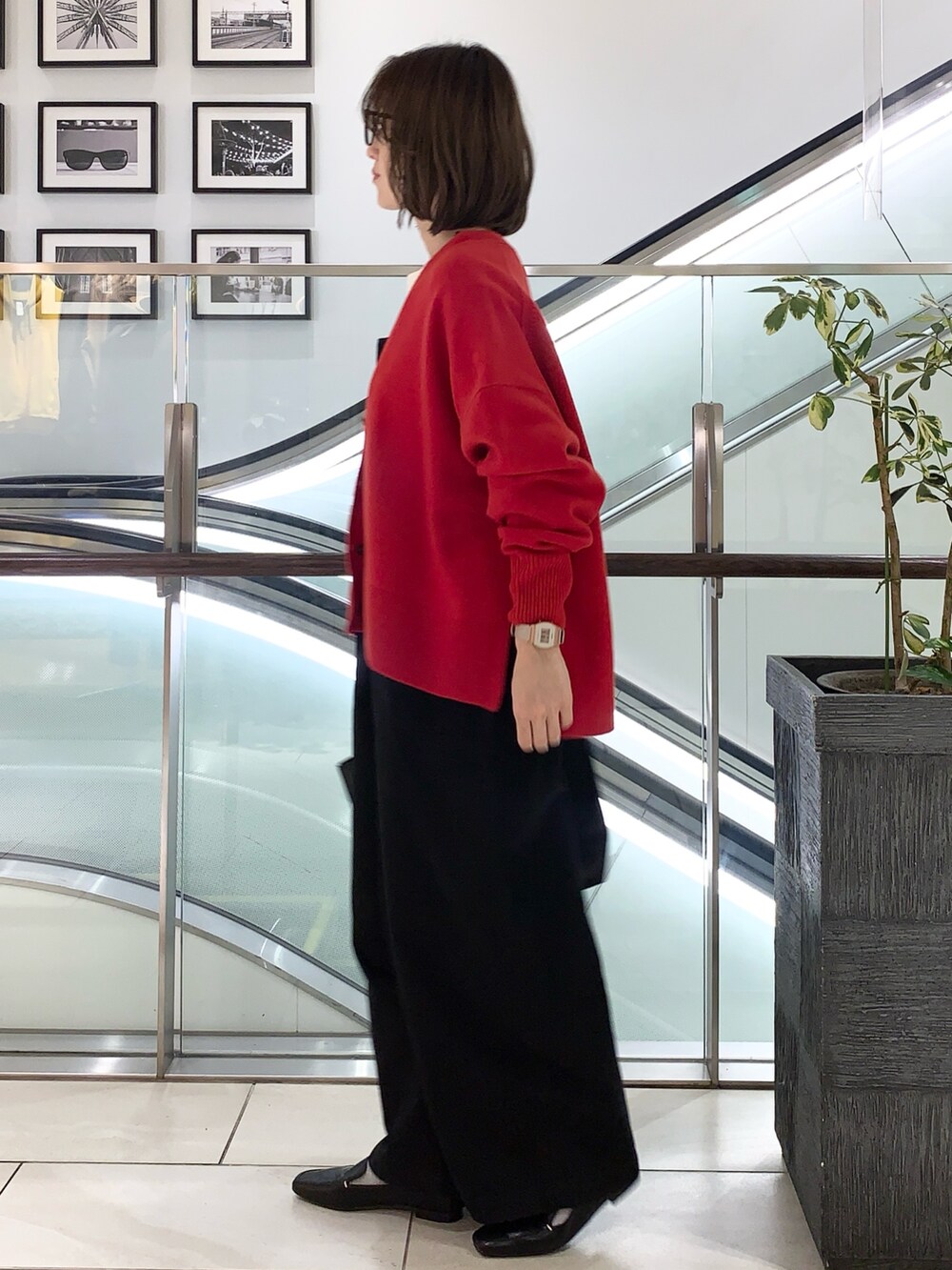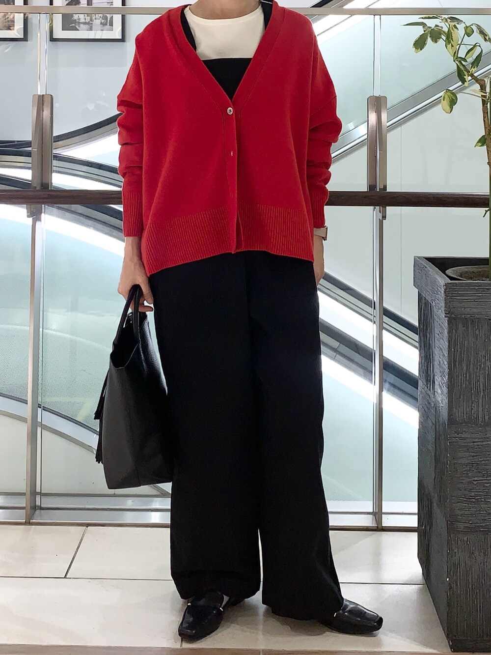 オンラインで先行で見ていて楽しみにしていた赤ニット✨かぐれらしい、おしゃれなレッドです😊