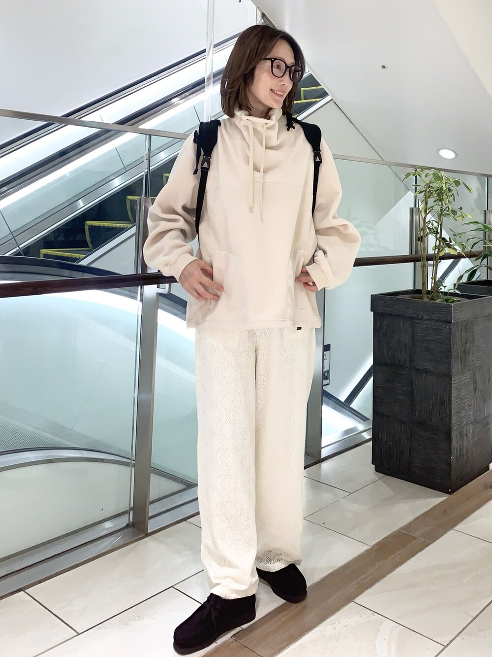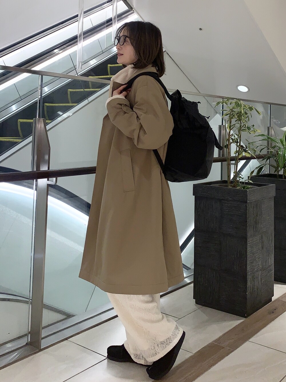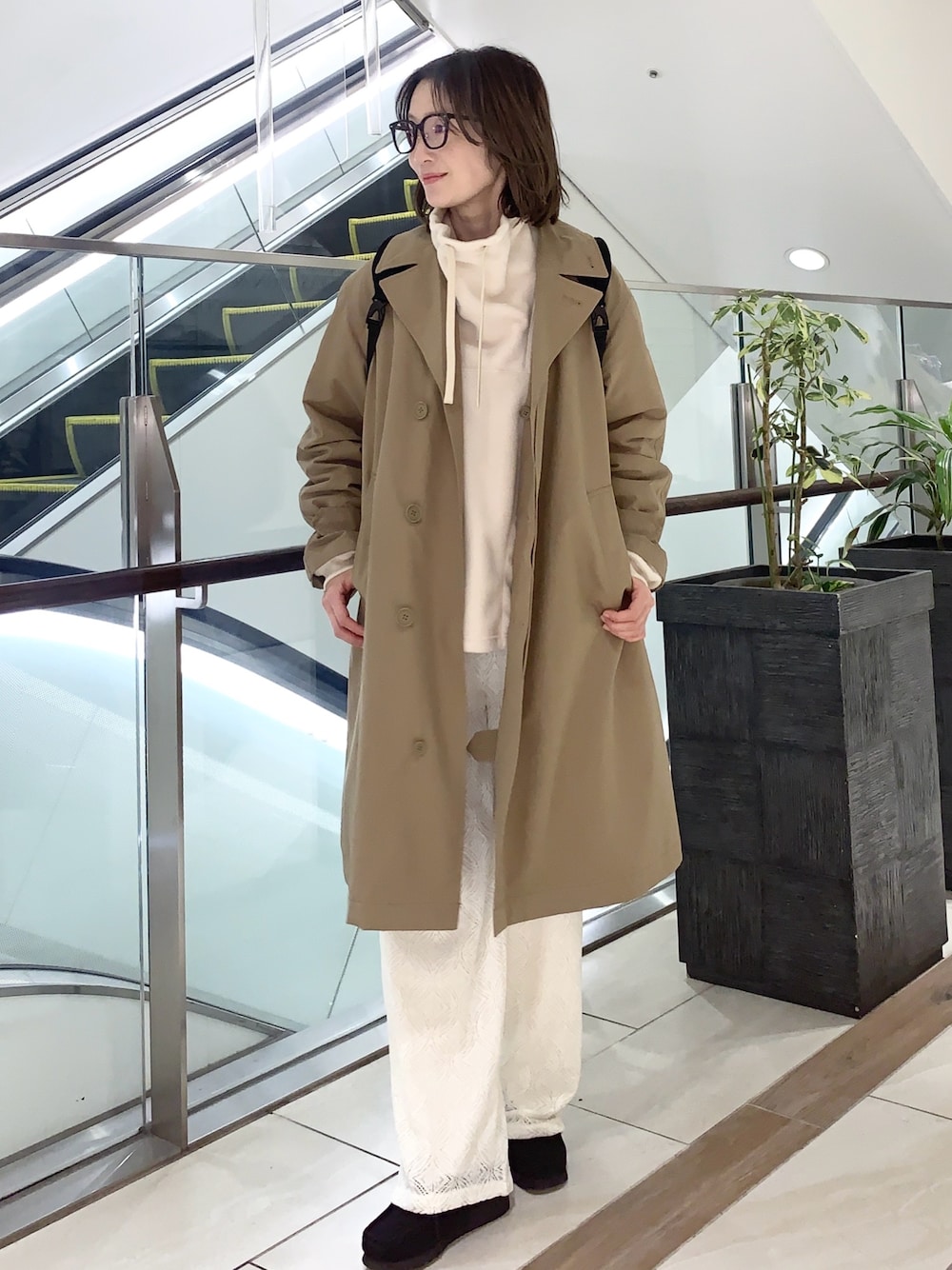 長さもあり体を包んでくれる丈とゆとりは、軽めのアウターでも冬場に安心して着られるポイントです。ボリュームスリーブのトップスや、フリースなど厚めのものをスルッと着られ、ベージュは見た目も軽やかです✨😊