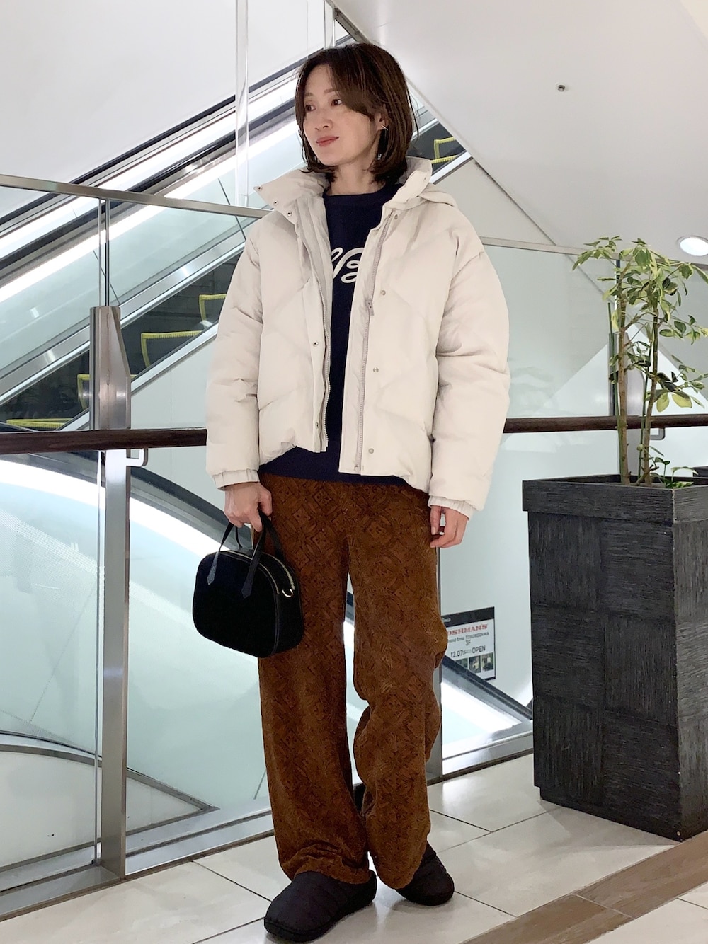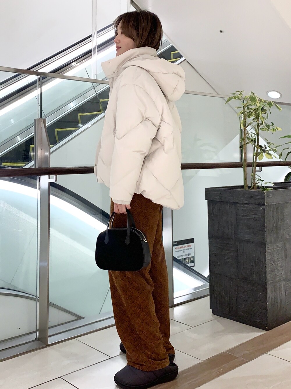 今回は古着合わせのような個性的なスタイリングを白のダウンでスタイリッシュにまとめました✨