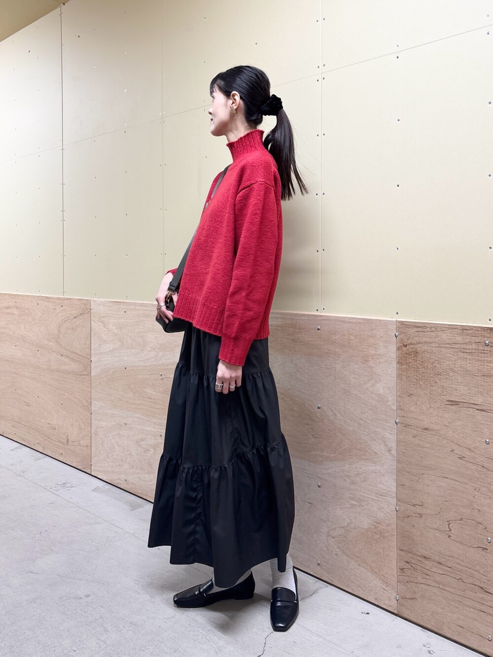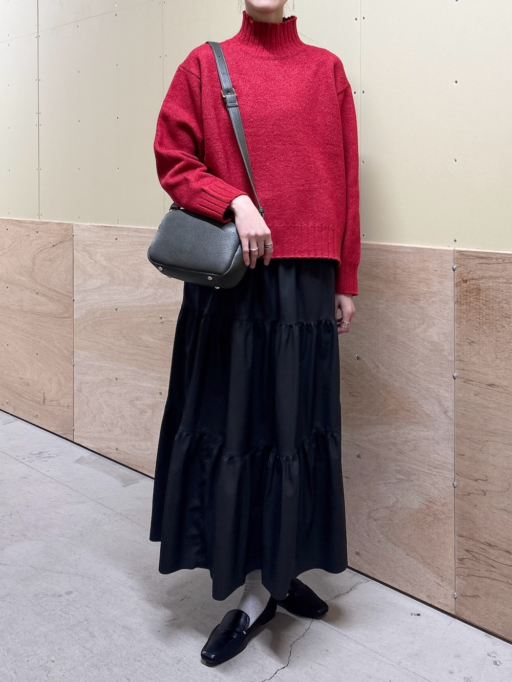 赤は一見すると派手に見えますが暗くなりがちな冬のコーディネートに映えるキレイな色です✨