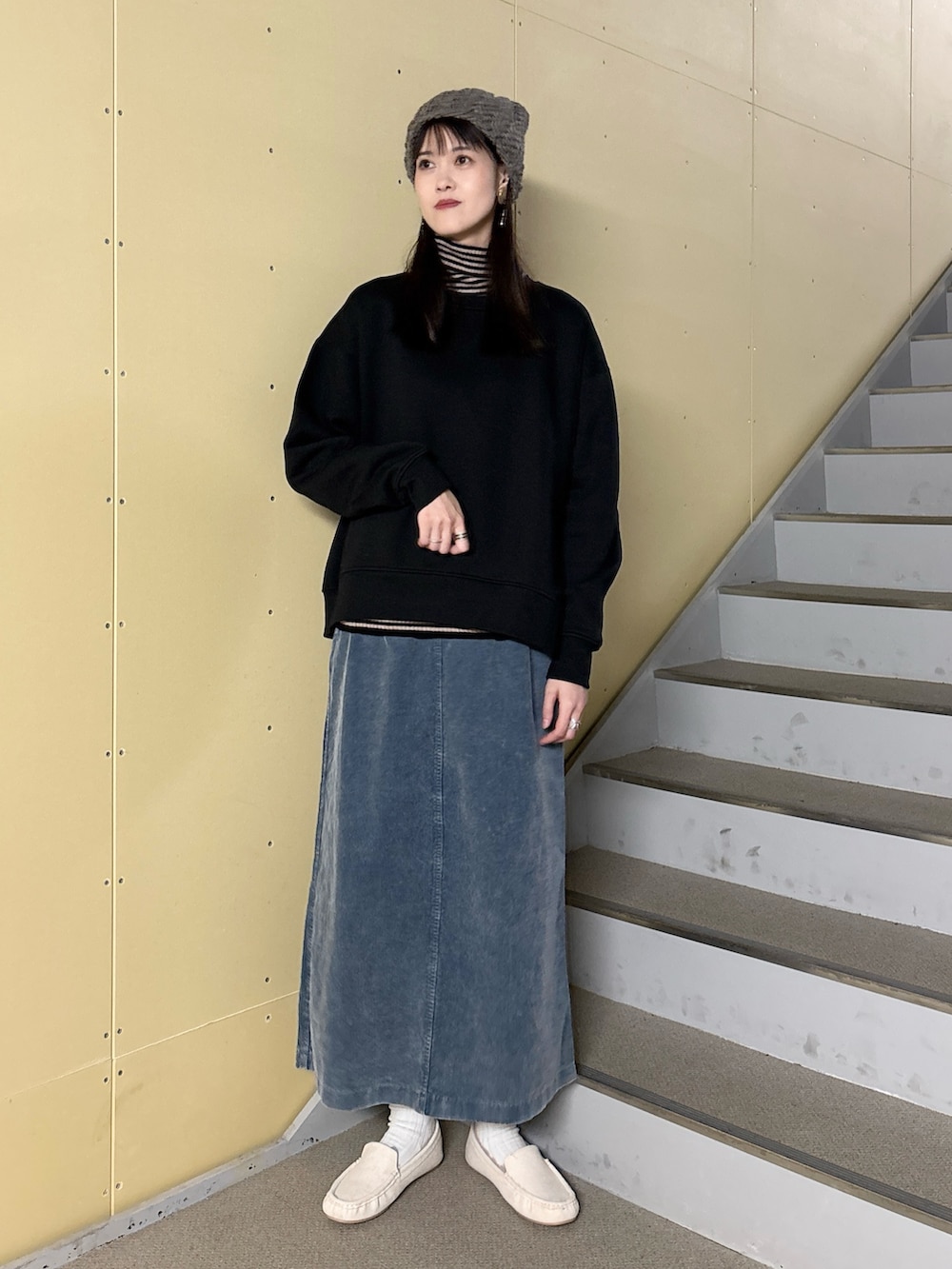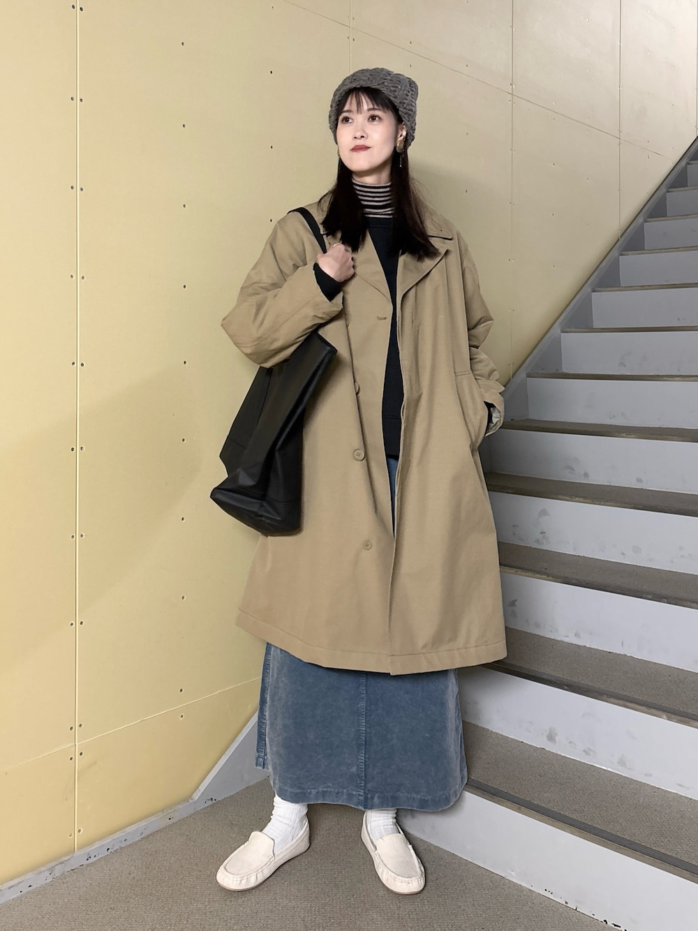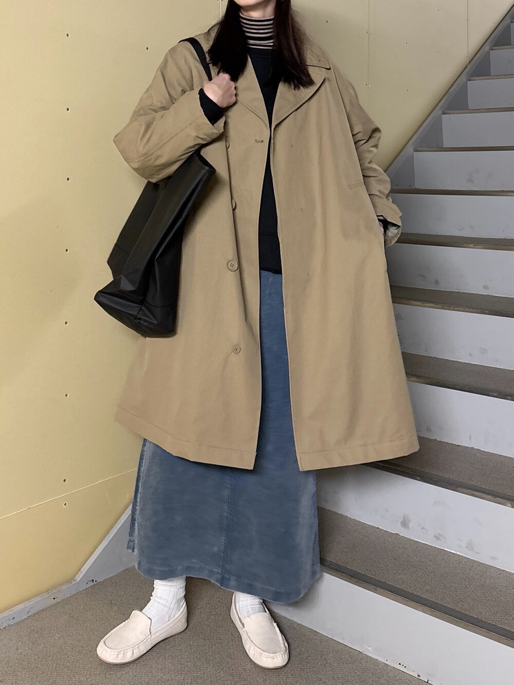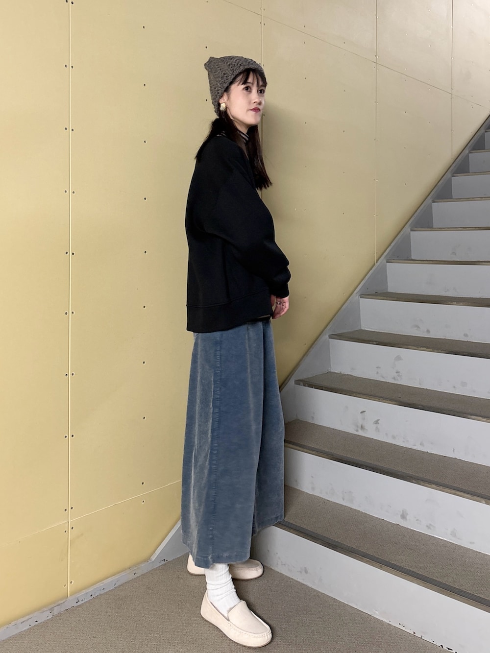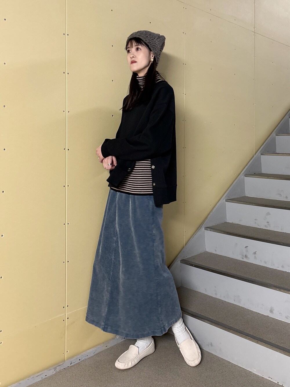 ゆとりのあるオーバーサイズのためシャツやカットソーを重ねやすく、サイドに付いた大き目のボタンを開けることでインナーを見せたレイヤードスタイルが完成します!!