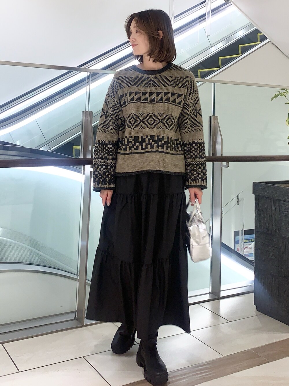 柄編みショート丈ニット