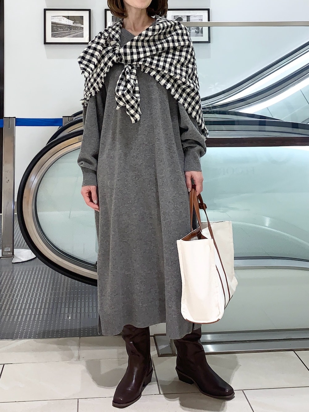 サイドゴアブーツを長年愛用していましたが、ロングブーツに浮気気味です。ワンピースに合わせるとグッと雰囲気が変わりますね😊