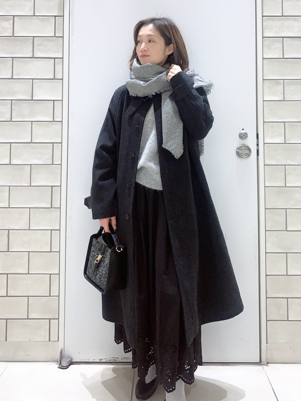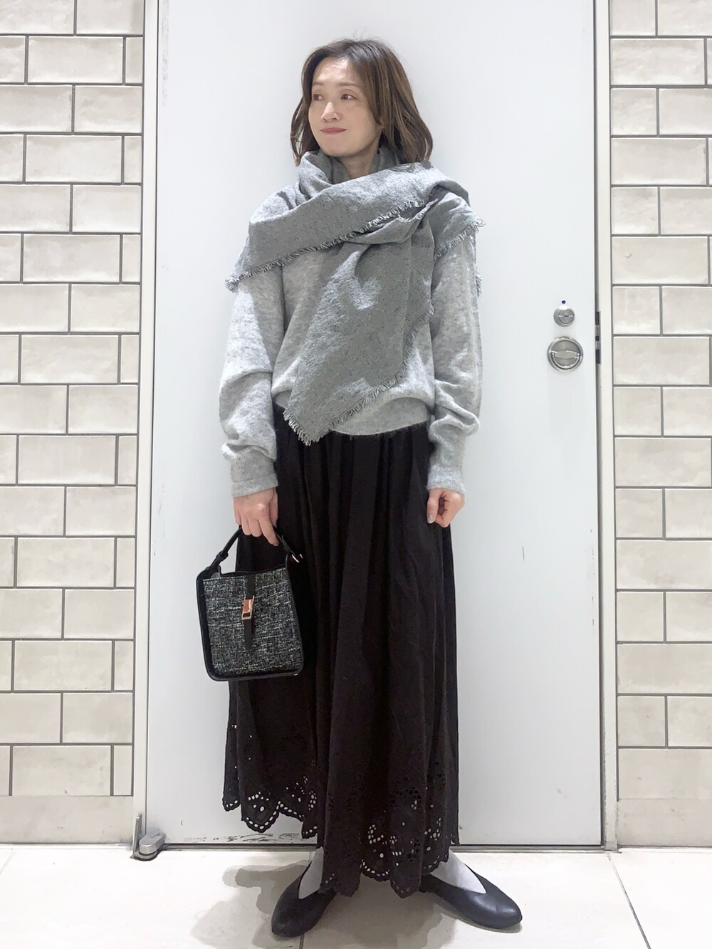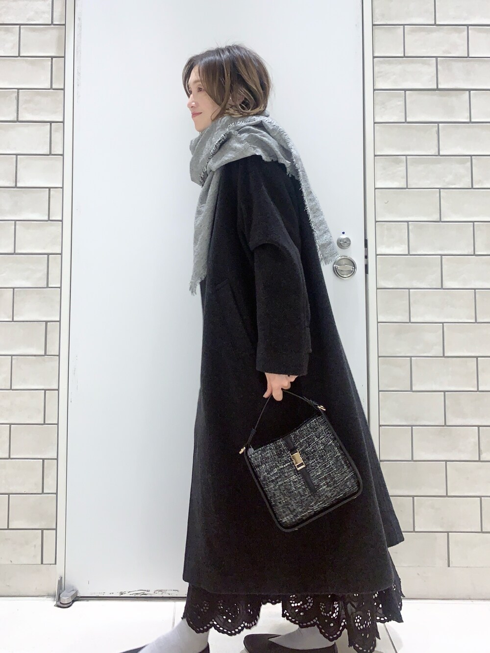 ツイードバッグはワントーンコーデで使うことで良さがさらに引き立ちます😊