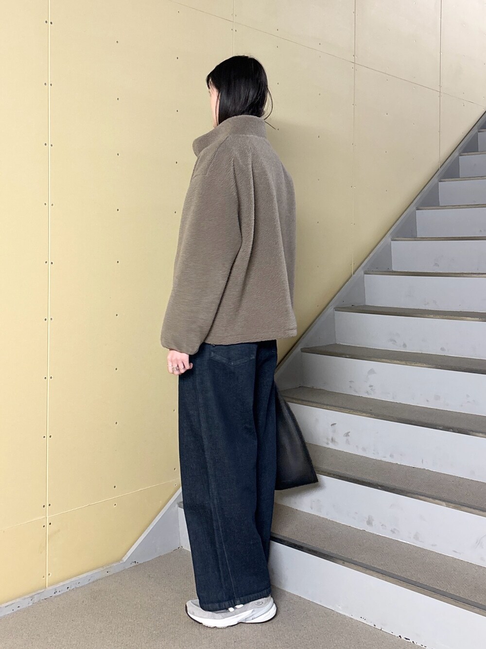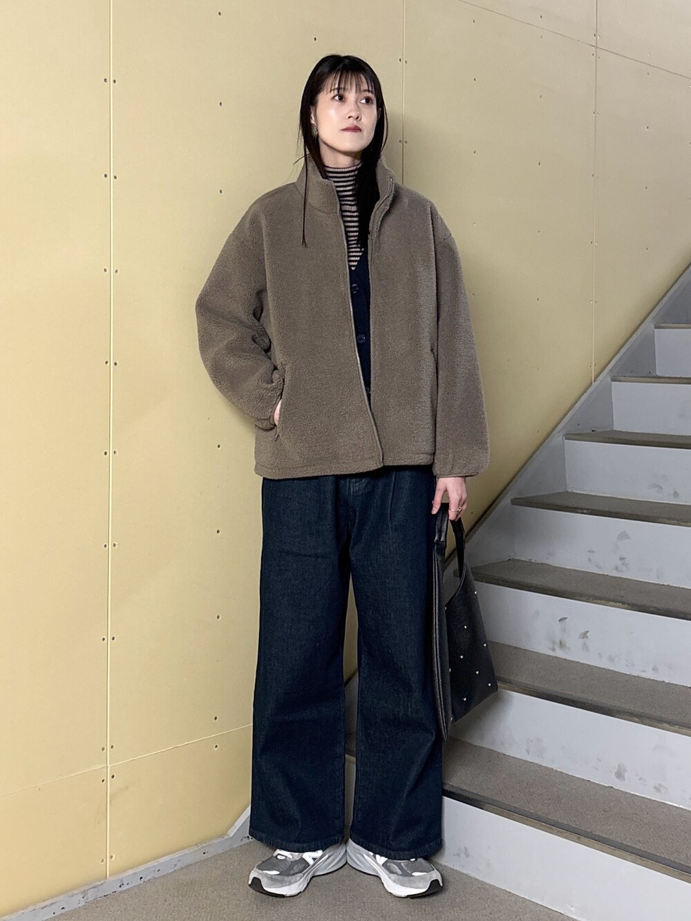 思っているよりボアが膨らみにくくふっくらして見えない、大人も着やすいボアブルゾンになります。