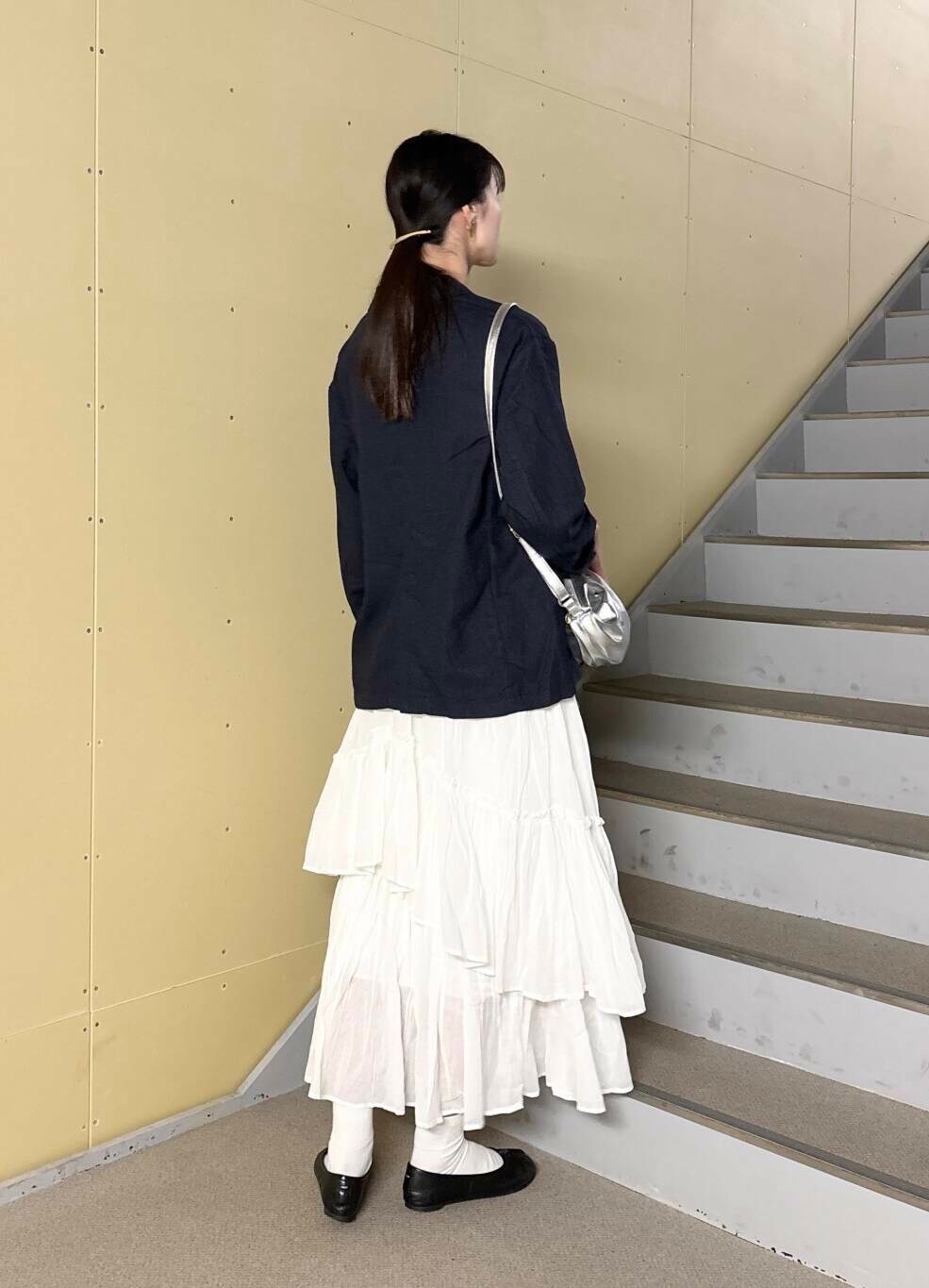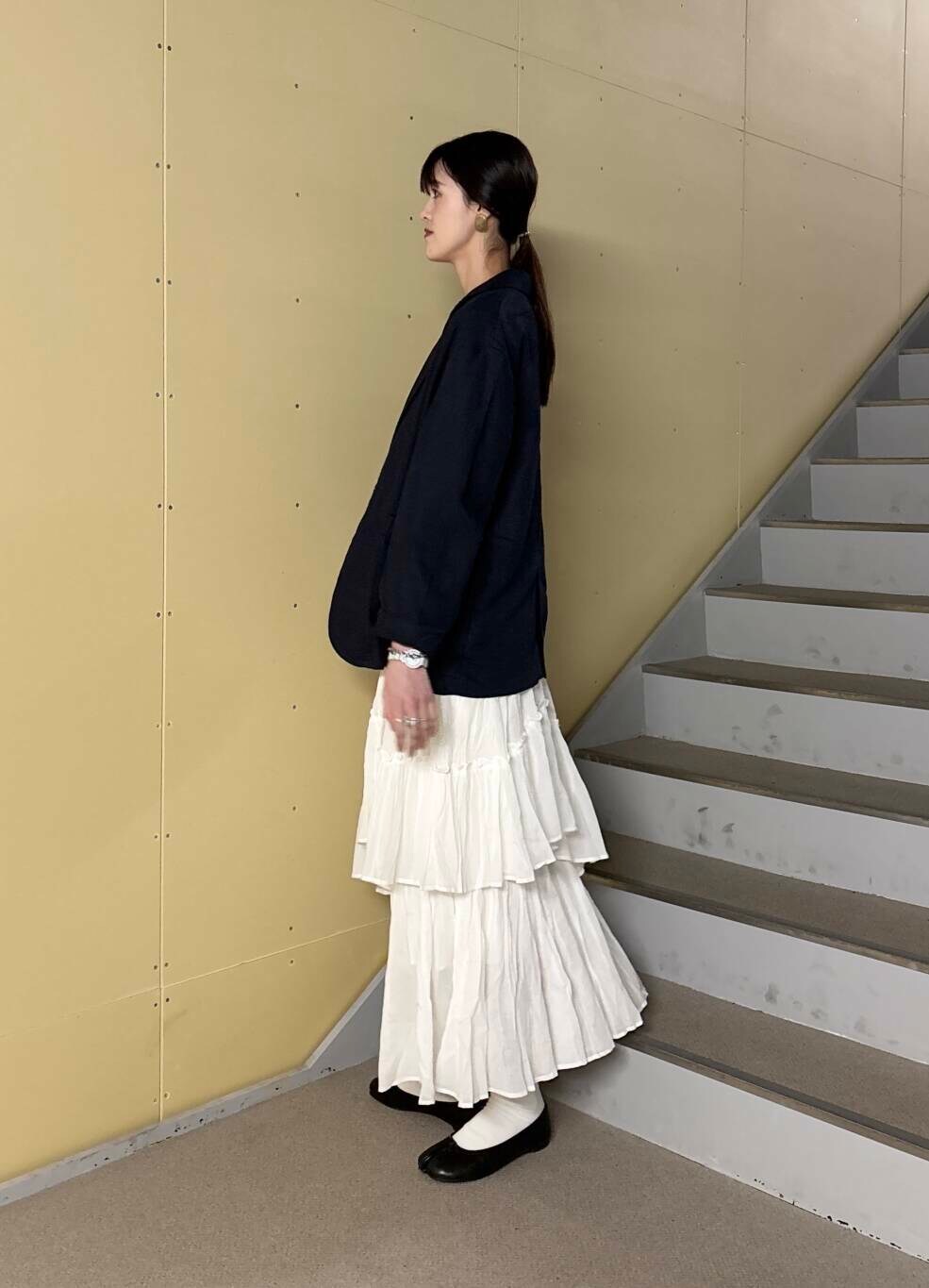 ドアーズらしくジャケットにボーダー、流行りのランダムティアードのスカートで合わせてみました〜◎