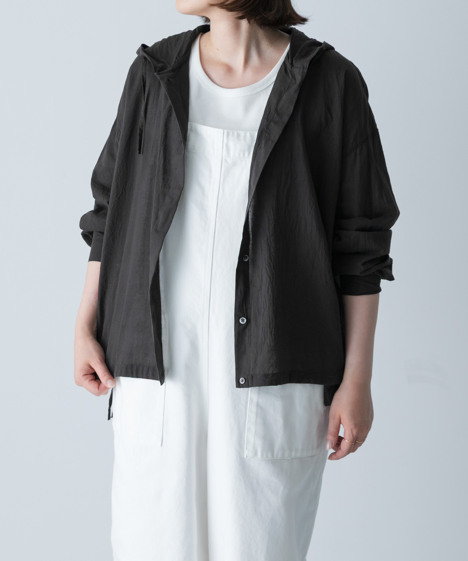 かぐれコットンシルクシアーフーディシャツ