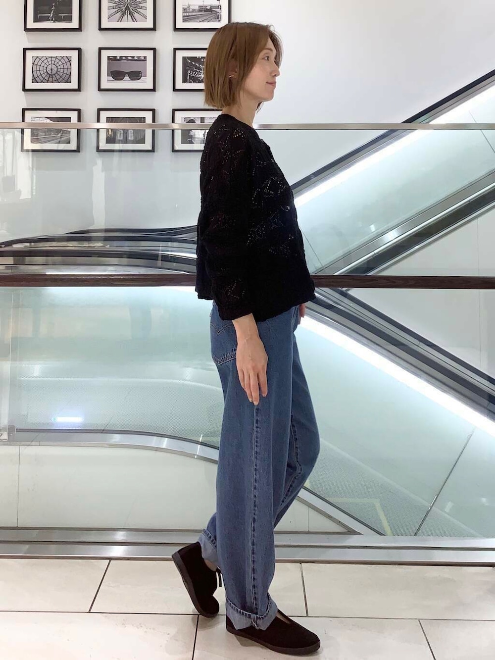 ワイドとは違うどこかレトロな雰囲気がとても良い形です。ひと折りすることでパンプスとも相性良くなりました✨