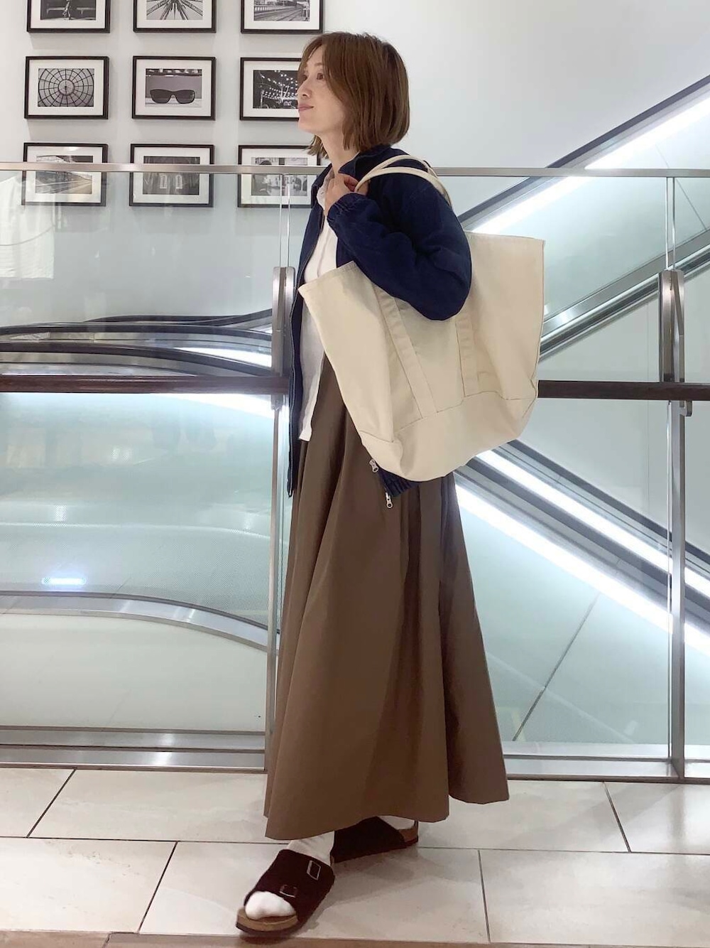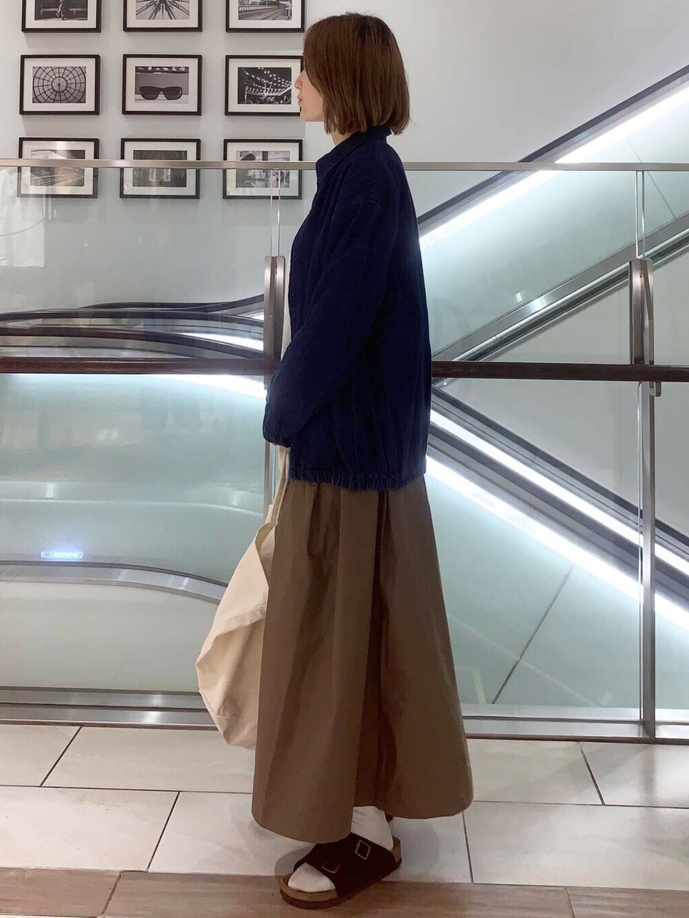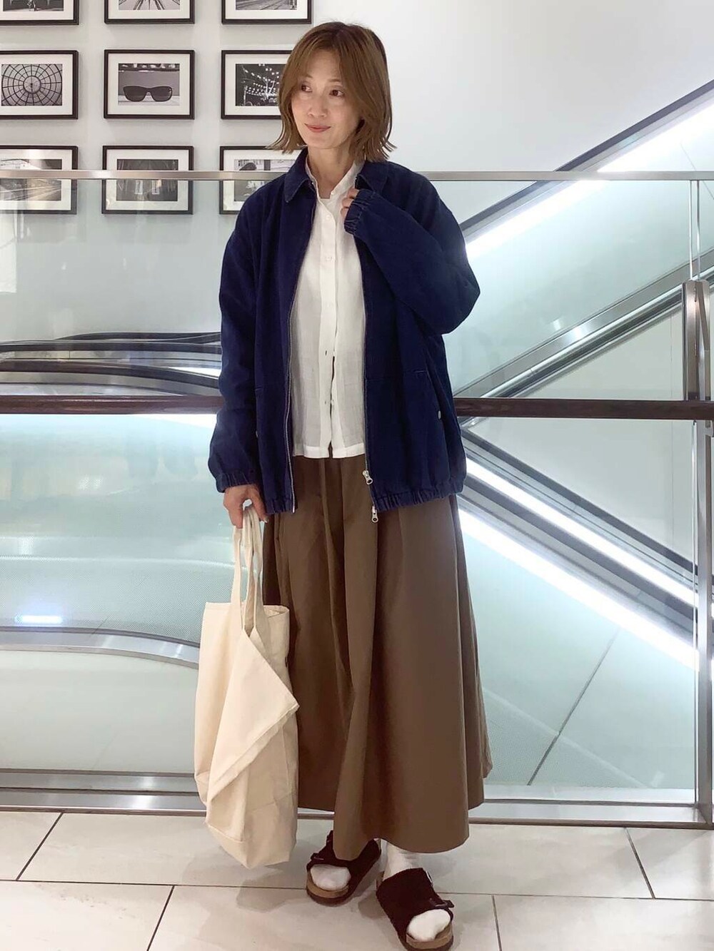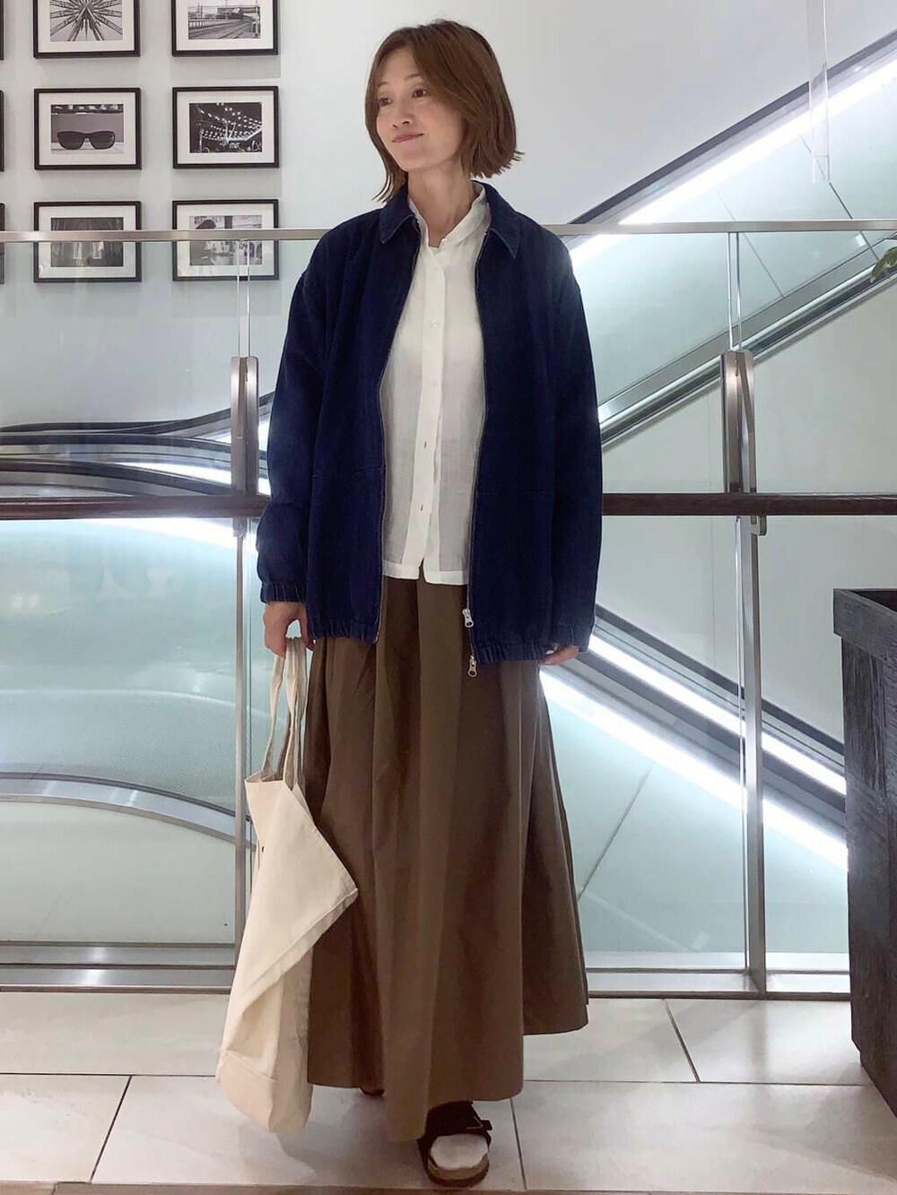 オーバーサイズのブルゾンを袖をまくるなどをあえてせずに着るのも、スカートスタイルには可愛いくて好きです!色味も良く、ベースの色となんでも合わせやすく馴染み過ぎないのでindigoおすすめです😊