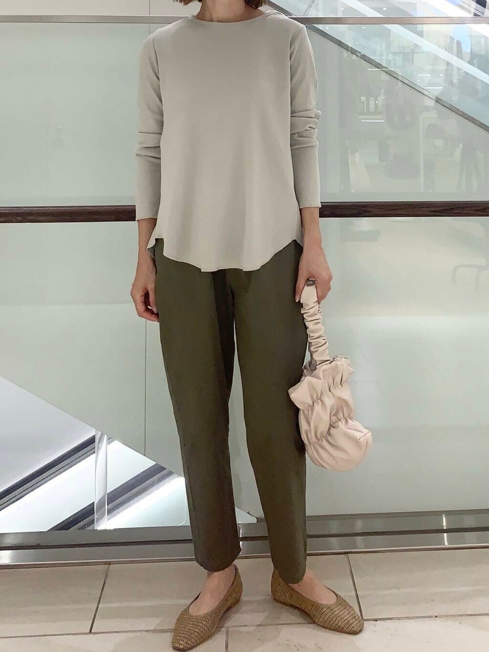 バックシルエットで魅せるトップスは、シンプルな合わせも地味見えしない使いやすさがあります。