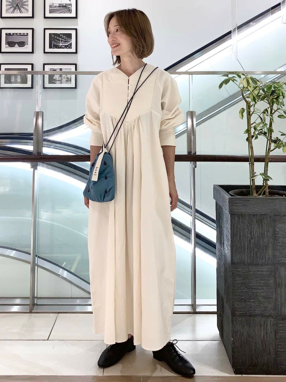白いワンピースはなかなか手を出せないアイテムになっていましたが…大人も着られる、甘過ぎず個性派過ぎないワンピースでした✨長さもあるので足元のシューズも選ばずです。レースアップシューズにする事で、うまくまとまった気がします😊