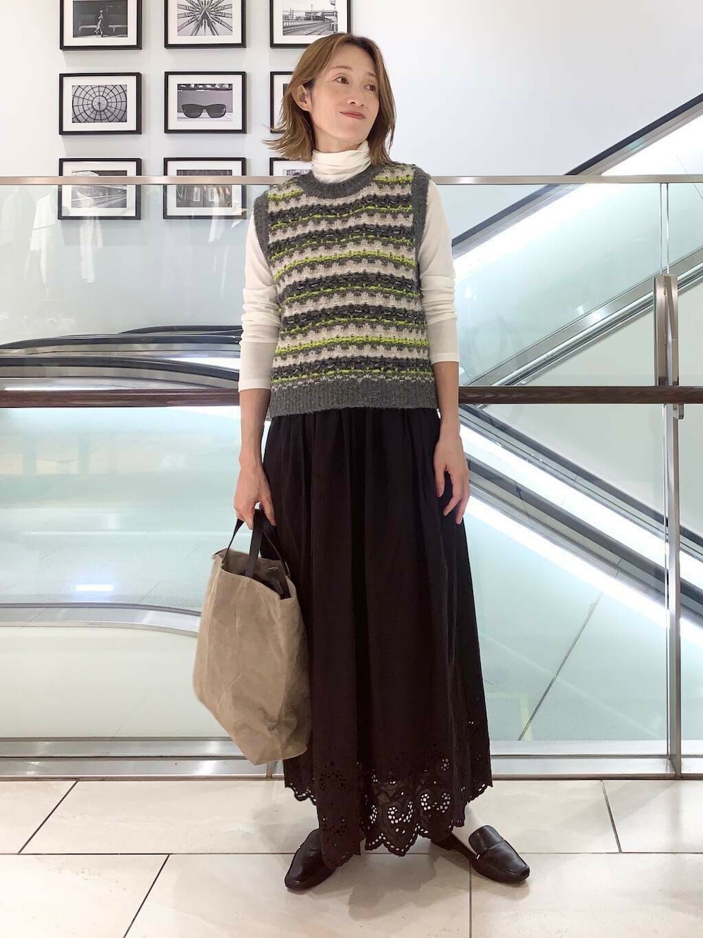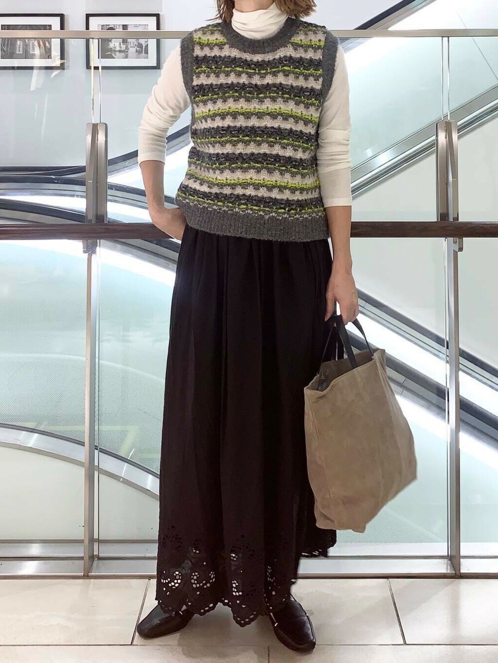 カラーやデザインに既にポイントのあるスタイリングのとき、黒バックではない選択肢でカジュアルダウンして使えます!