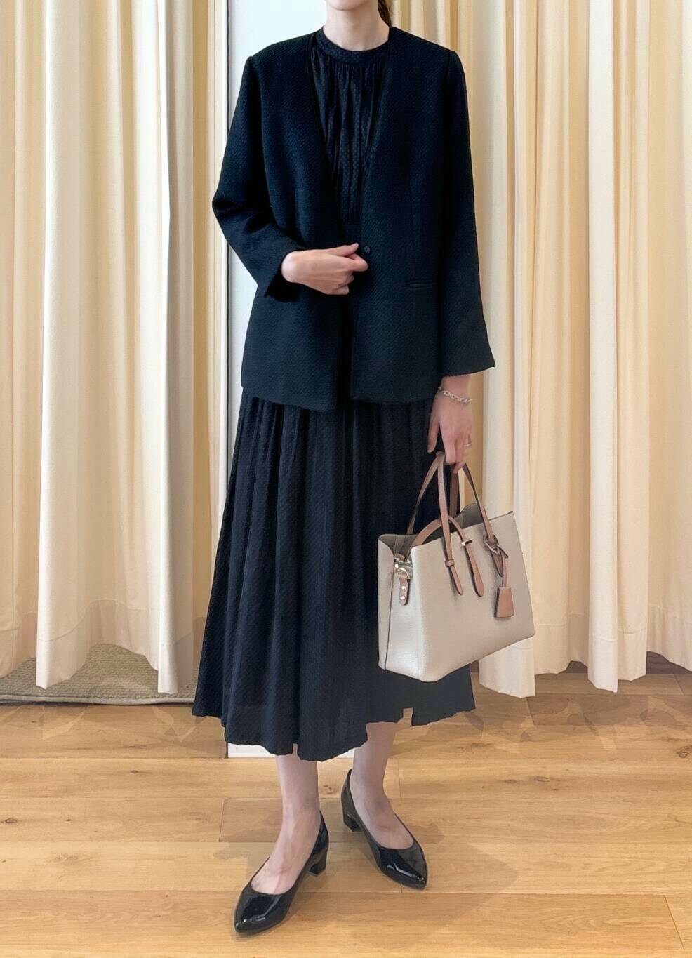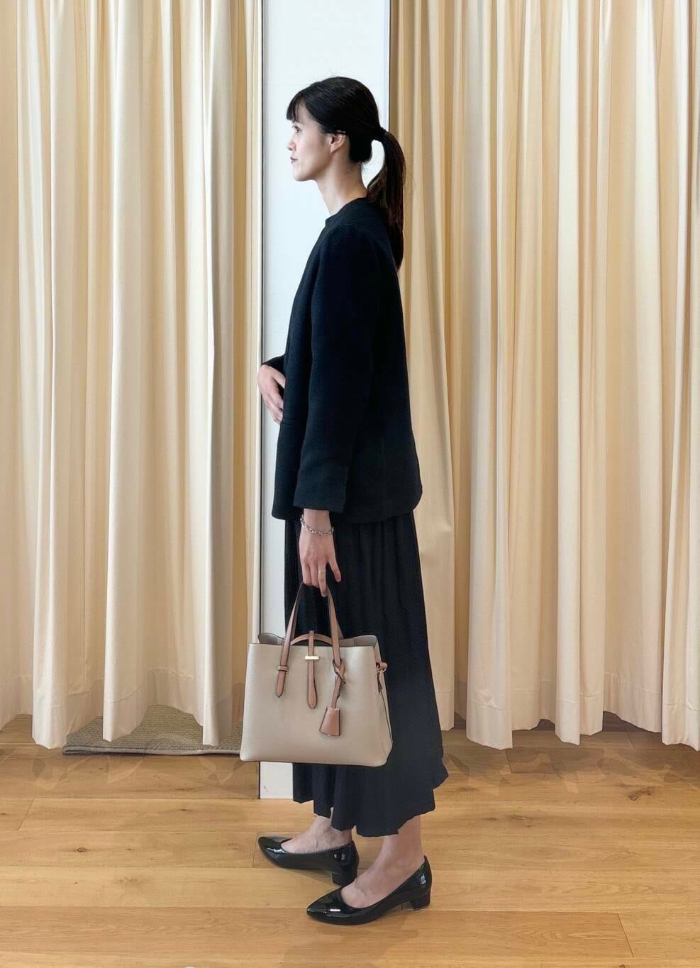 身長170cmが着用すると足首はしっかり見えますが、パンプスで合わせるとそこまで気にならないように感じます。