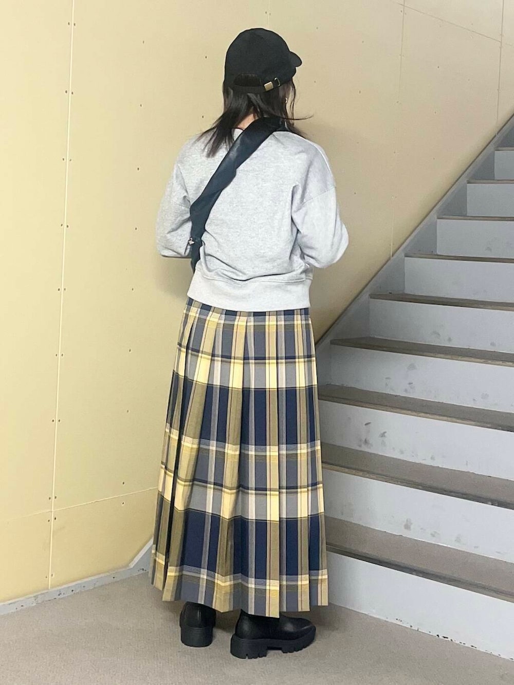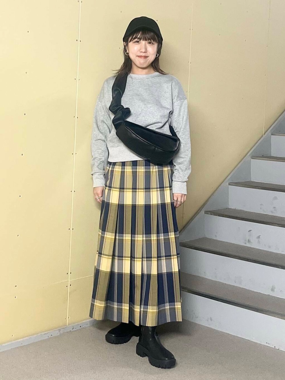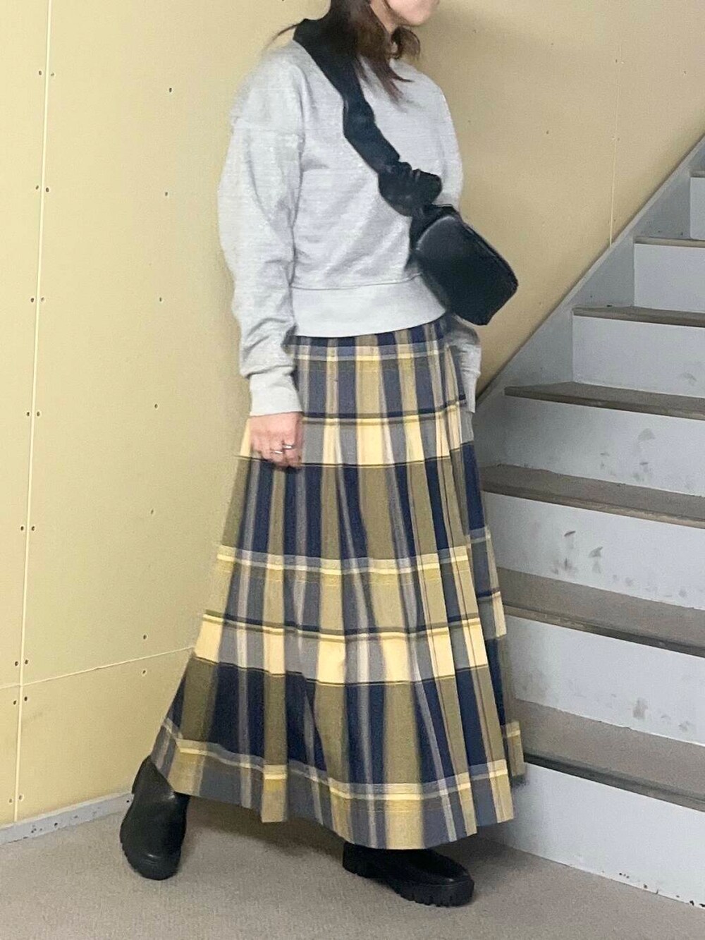 毎年好評のチェックスカートが今年は2サイズ展開になります。156cmの私はSサイズを着用してちょうどいい丈感になります。