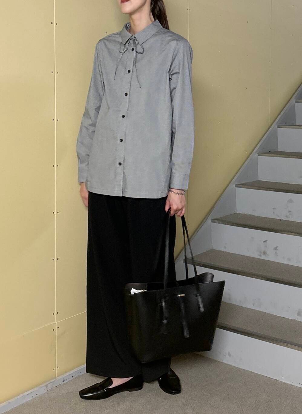 取り外しが可能な細めのリボンが付いたデザインシャツになります!