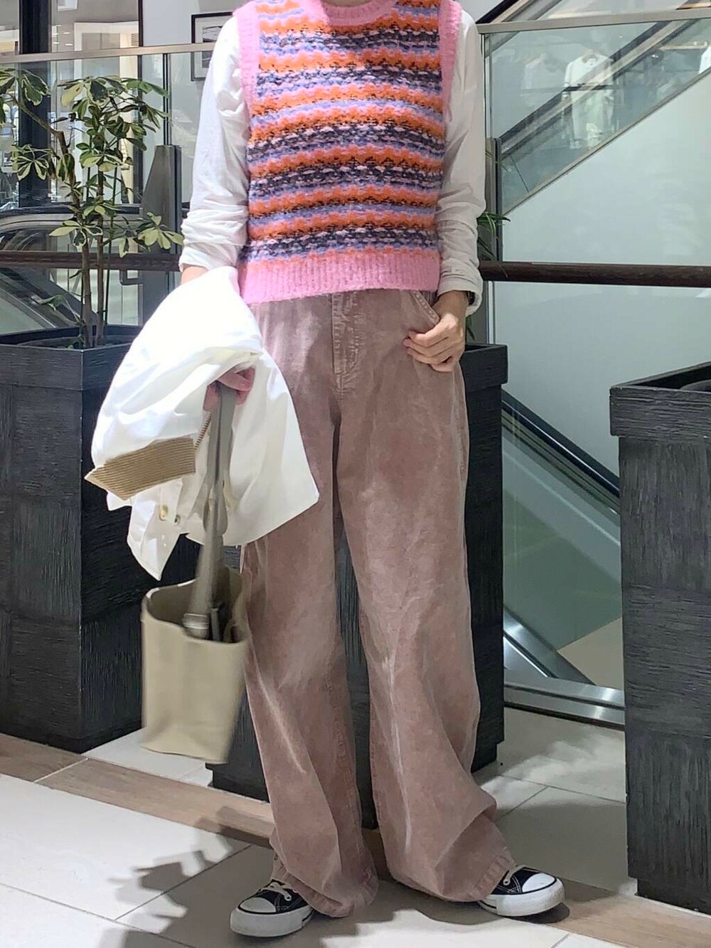 製品染めカラーがコーデュロイのほっこり感を柔らげてくれます。