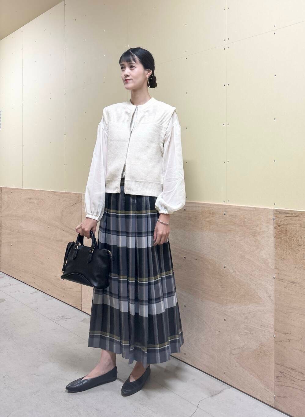 オーガンジーシャツで抜け感を出してベストで締めてみました。