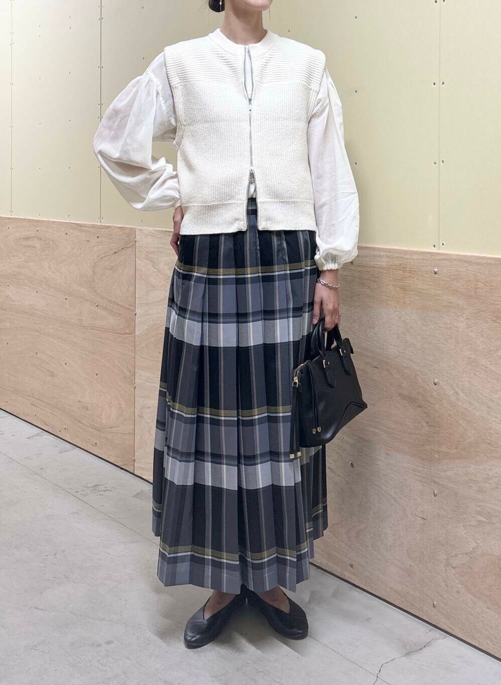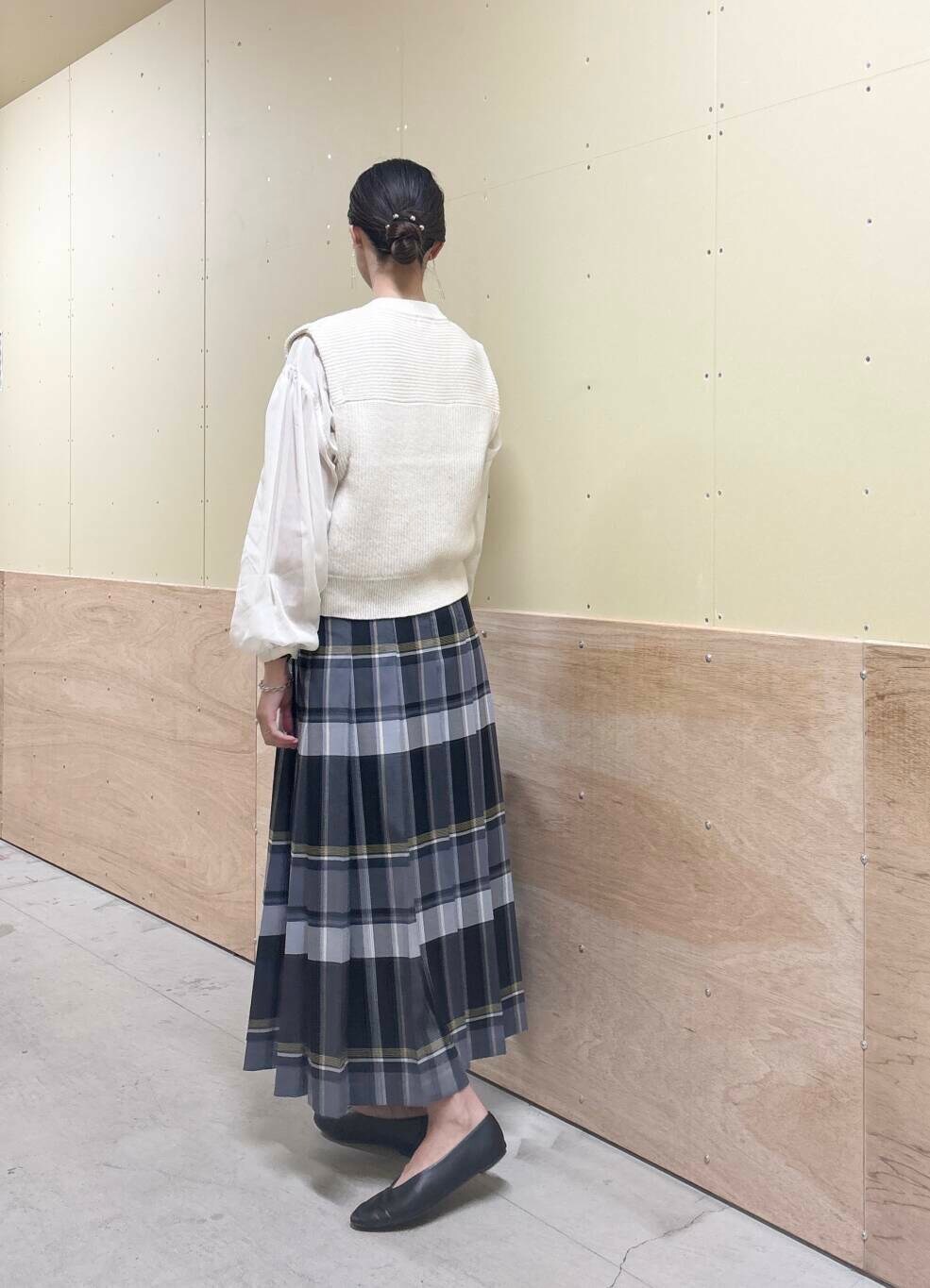 このスカートはサイズ展開があり、Mサイズは着丈の長さがあるので高身長さんにもおすすめになります✨