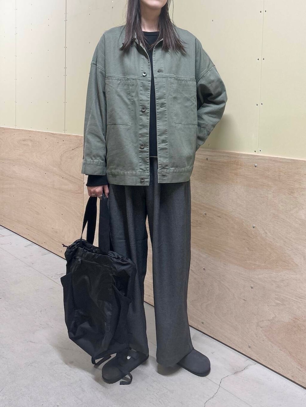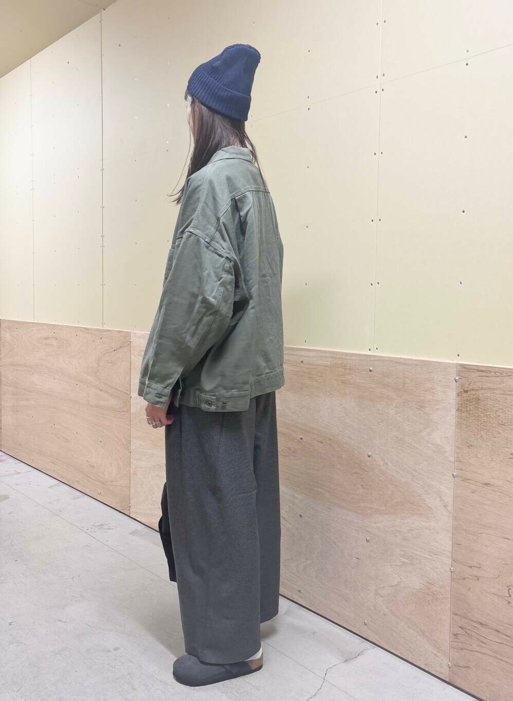 メンズライクな素材ですがカーブラインで全体的に丸みのあるシルエットになるので柔らかい雰囲気になります✨