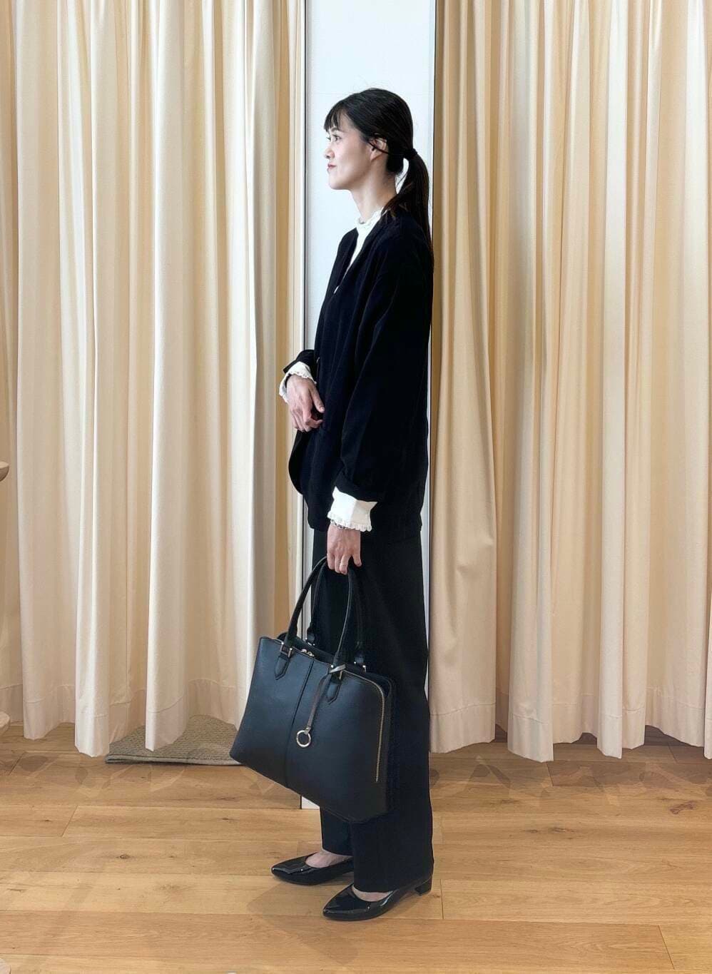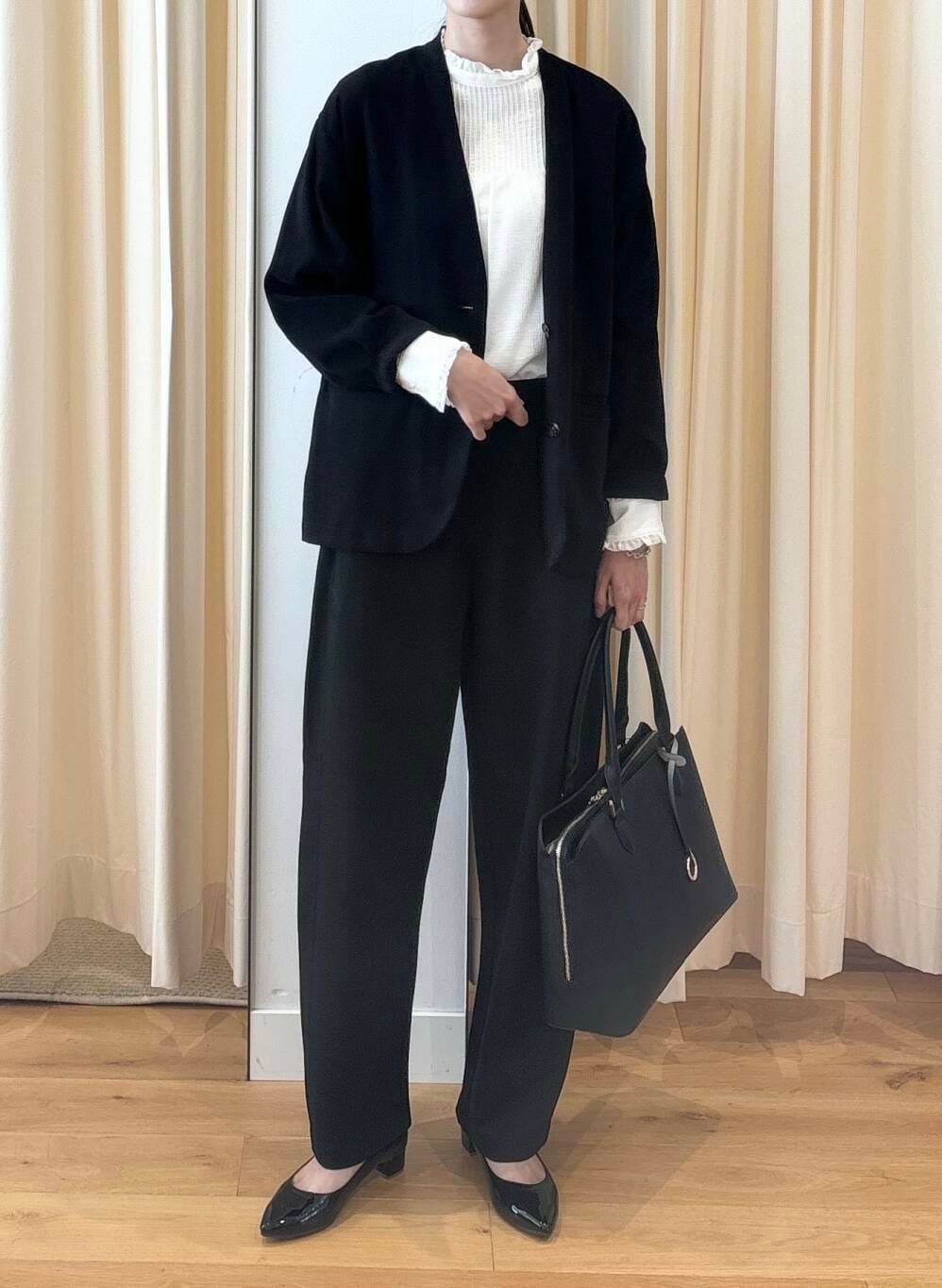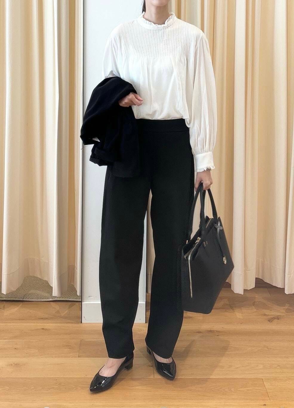 ブラウスは少し甘くなると思うので、ブラウス以外をブラックで合わせて統一感を出してスッキリ落ち着いた印象にしてみました。