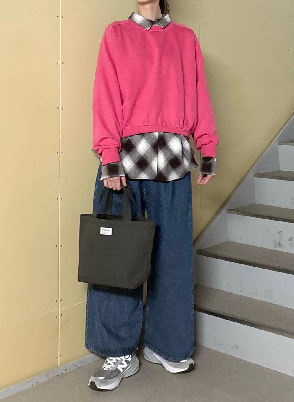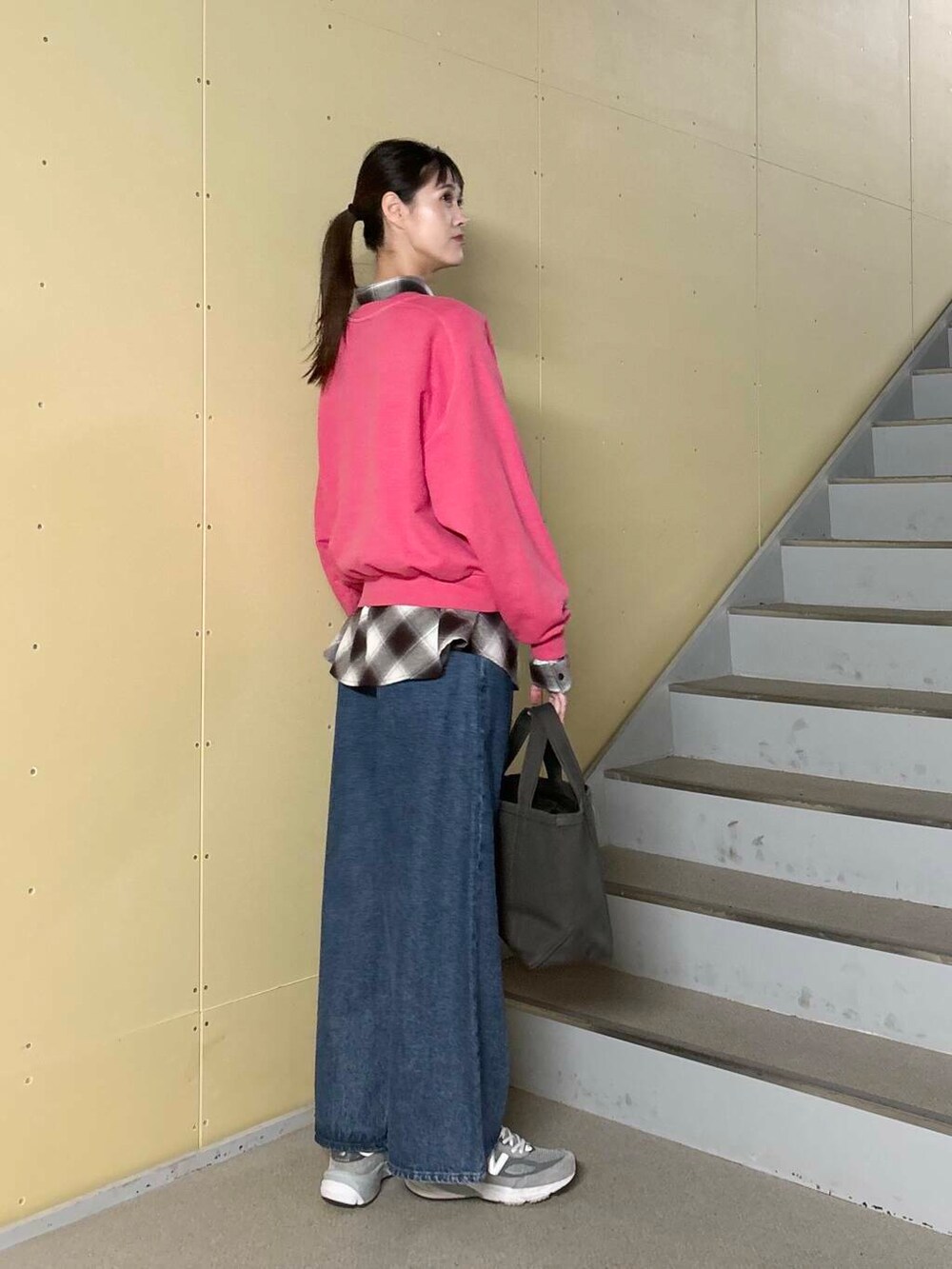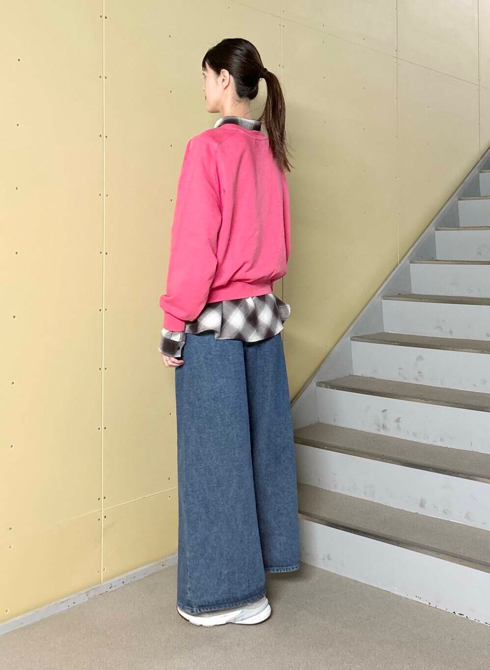 ドロップショルダーの少し短めの丈感なので丸みのある女性らしいシルエットになっています。