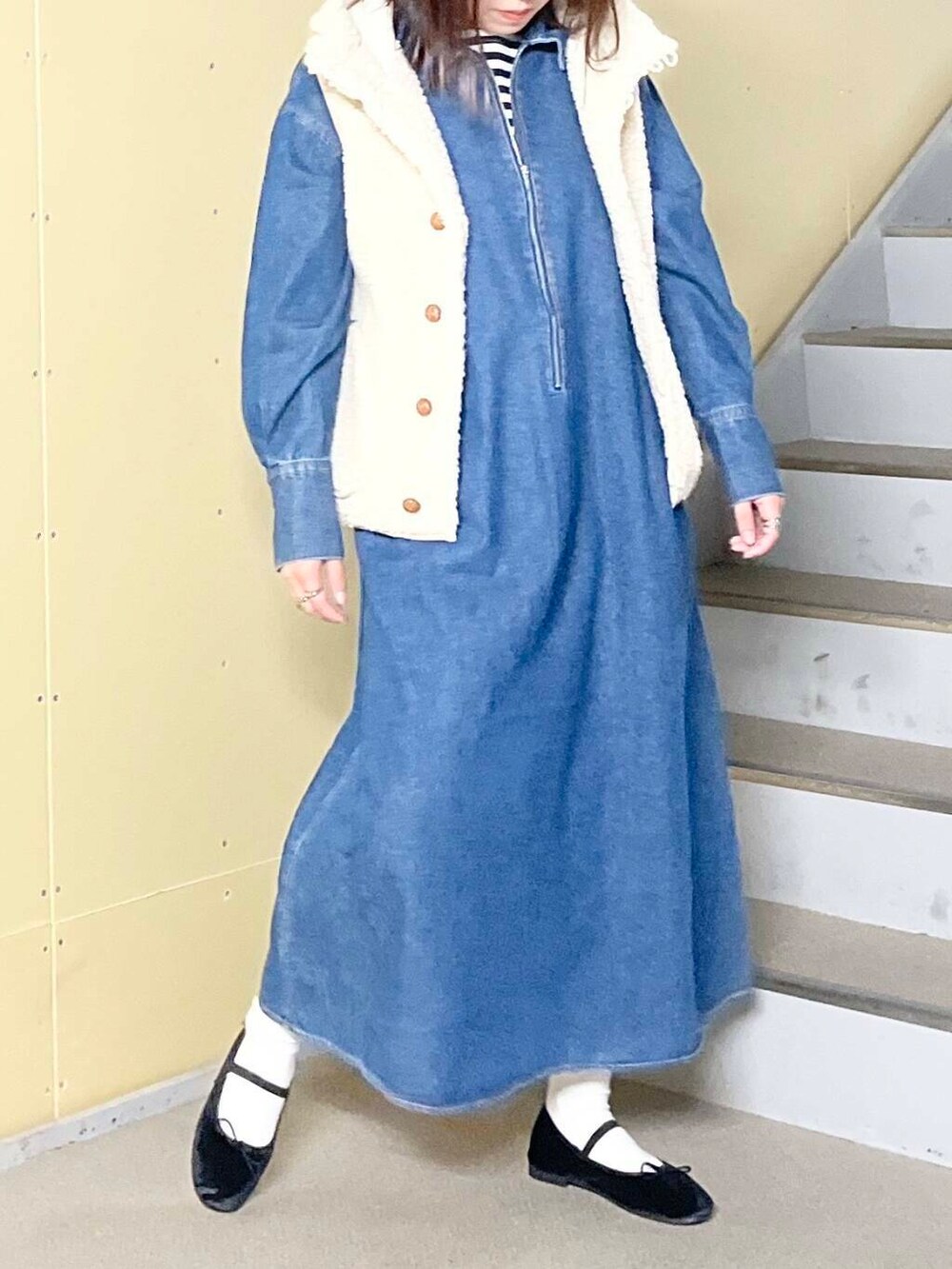 ✔︎デニムハーフジップワンピース