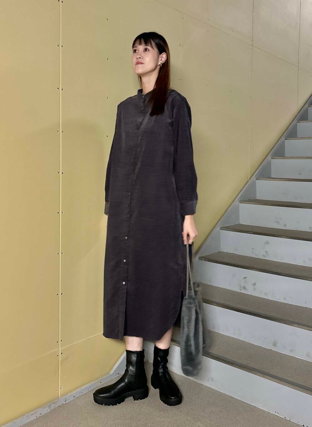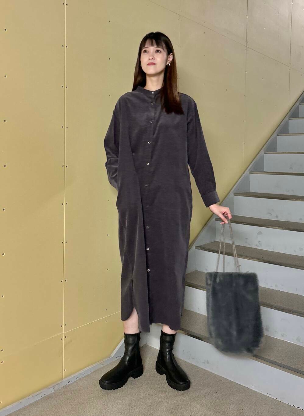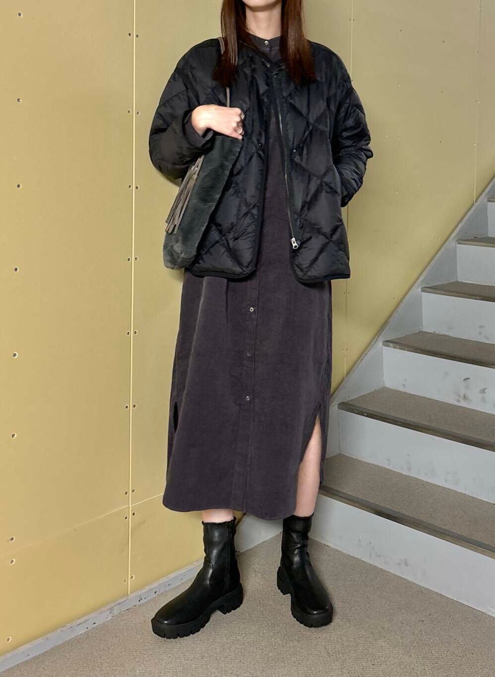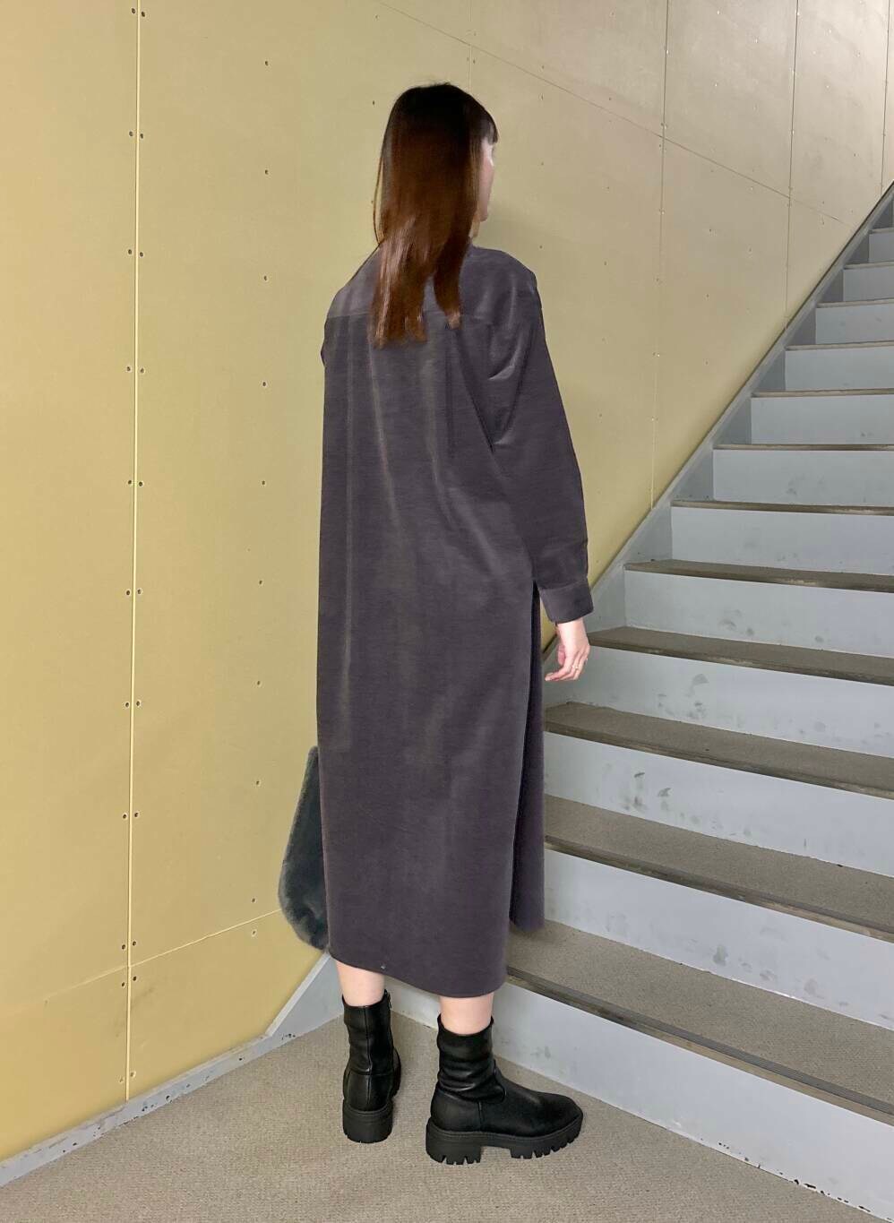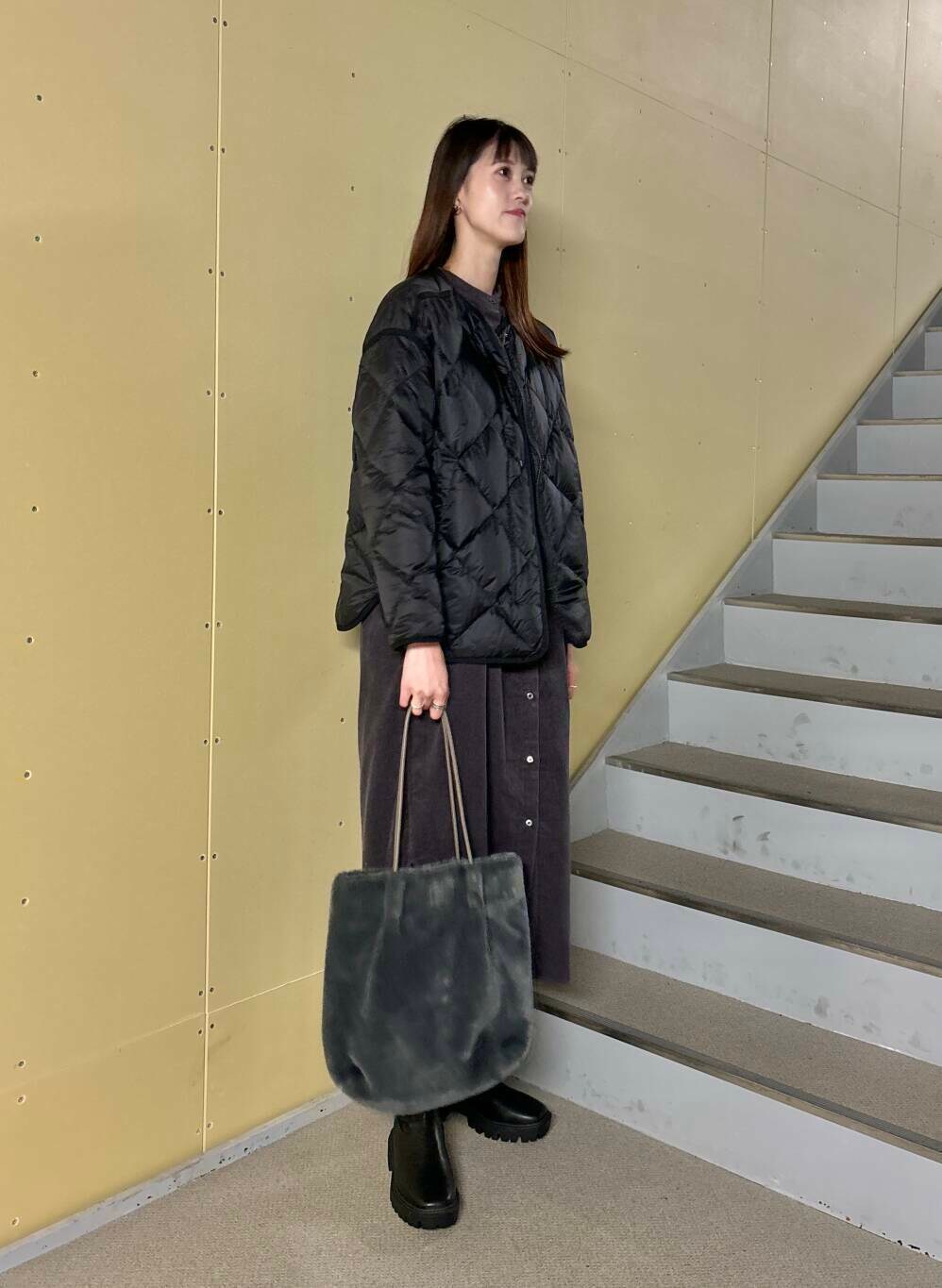 身長170cmが着用するとこのくらいしっかり足先出てしまいますが、ブーツなどの長めのものを持ってくると着丈はそこまで気にならないと思います!