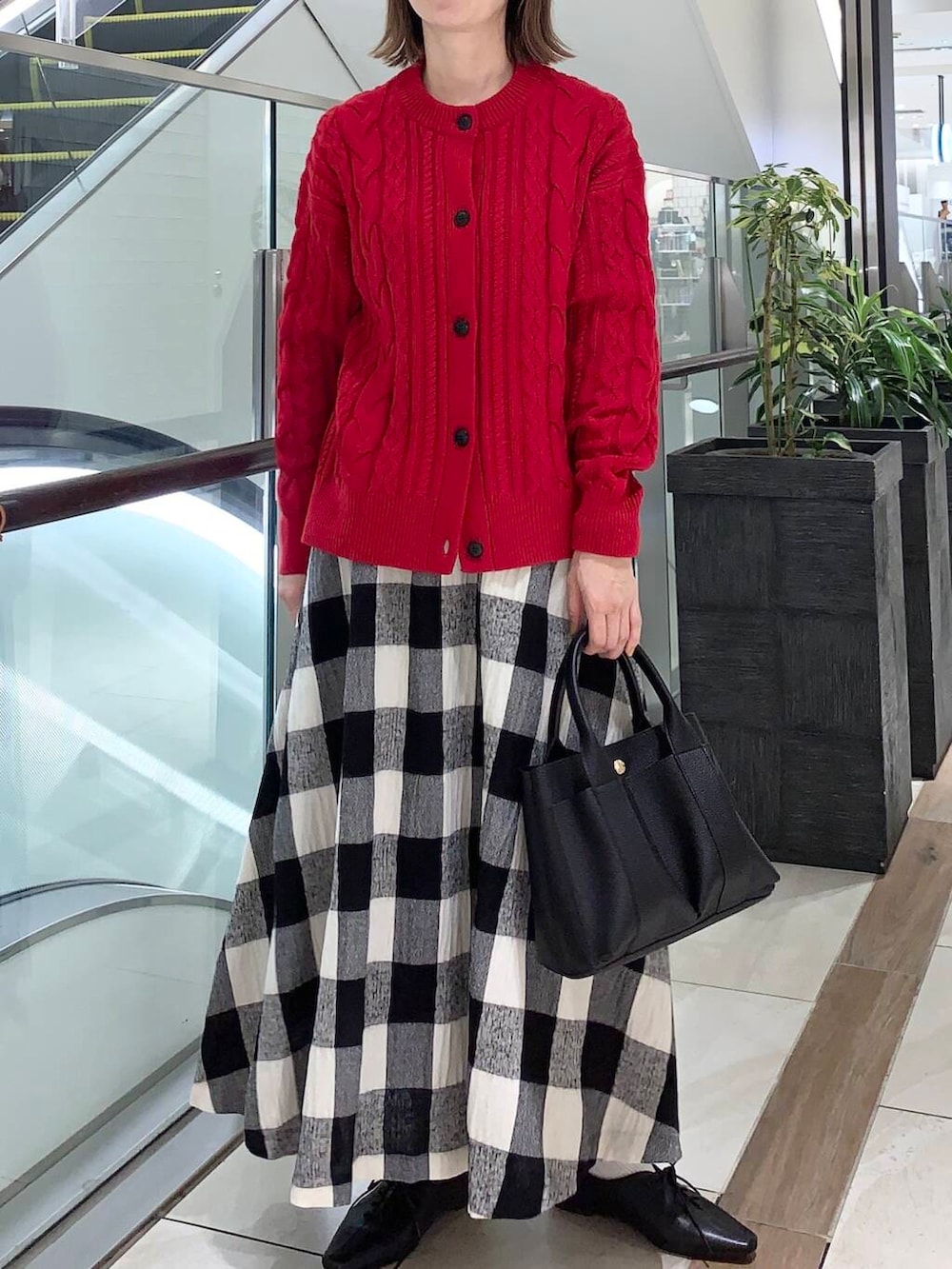 鮮やかなレッドカーディガン、気分はもうクリスマスです🎄✨😊