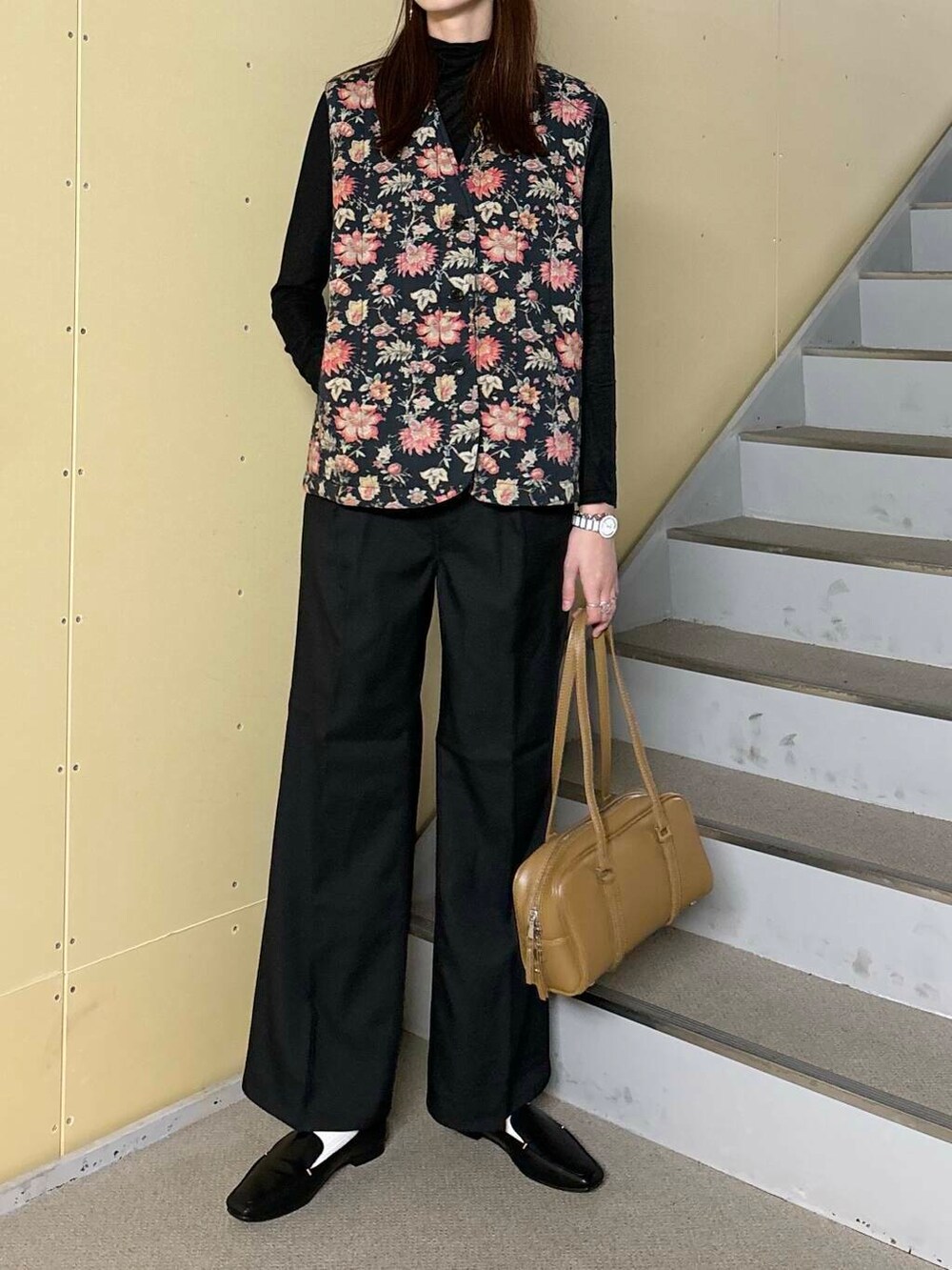 一緒に合わせたSOILのベストは柄が華やかでこれ一つで主役になります☺️