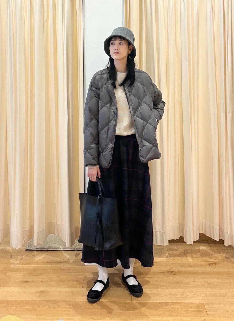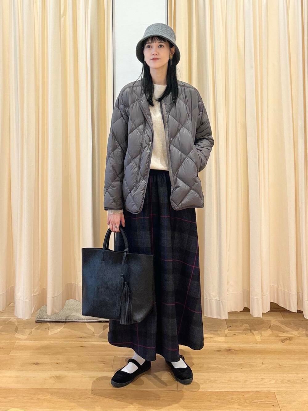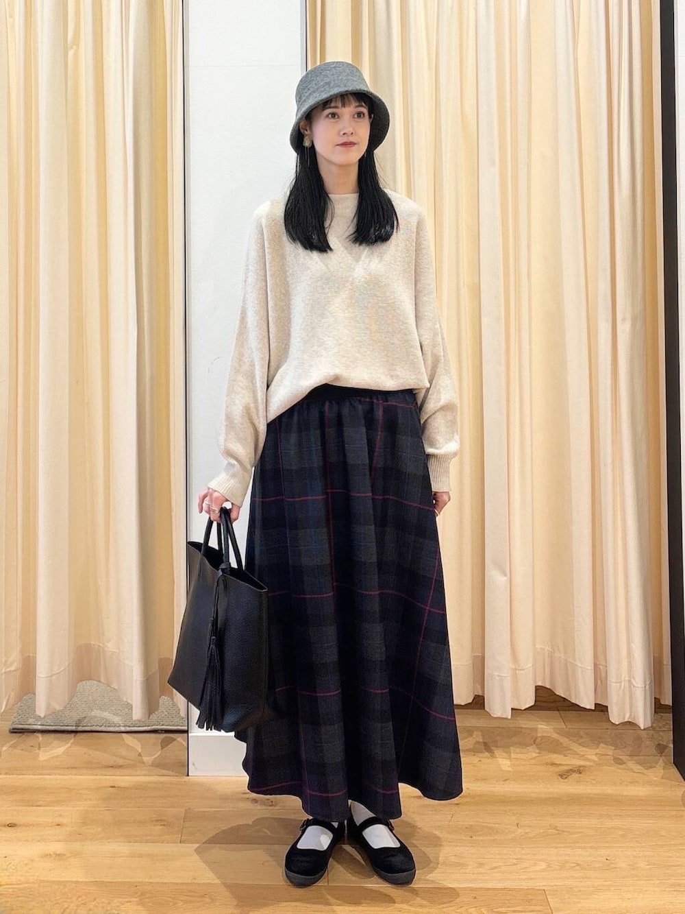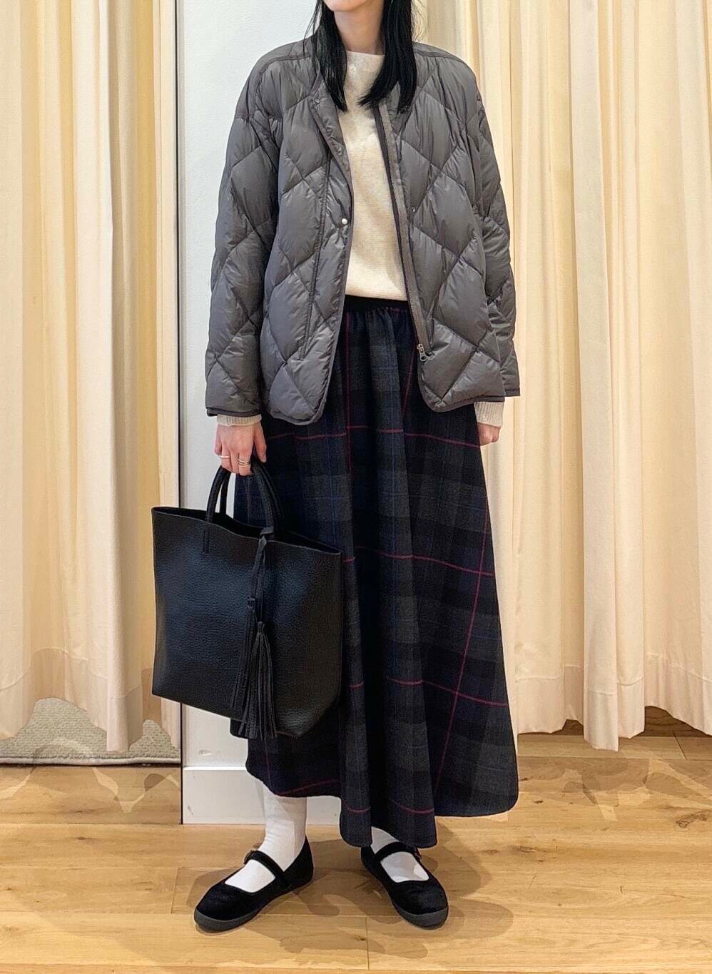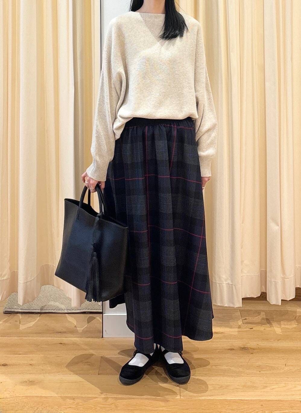 合わせるもの次第でクラシックにもカジュアルにも着こなせる優秀スカートです✨