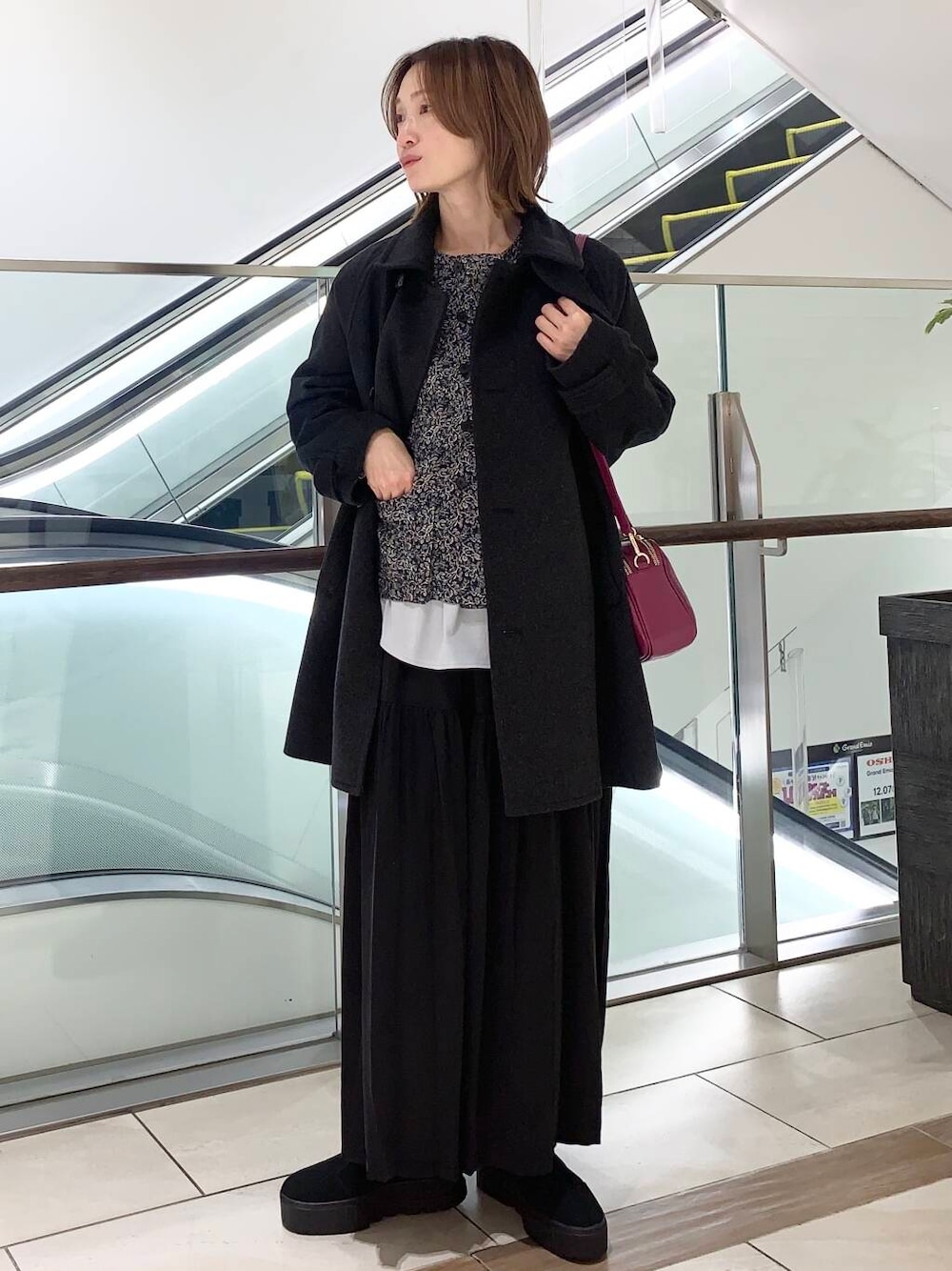 かぐれのアウターの中では、どちらかと言うとカジュアルタイプだと思っていたPコートですが、きれいめをしっかりおさめてくれる、きちんと感あるアウターでした✨裏地ありの温かさは安心感もあり、チャコールグレーの色味もとても良いです😊