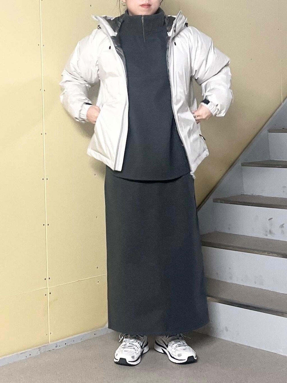 明るい方の色を着てみましたが、膨張して見えないのが嬉しいです。