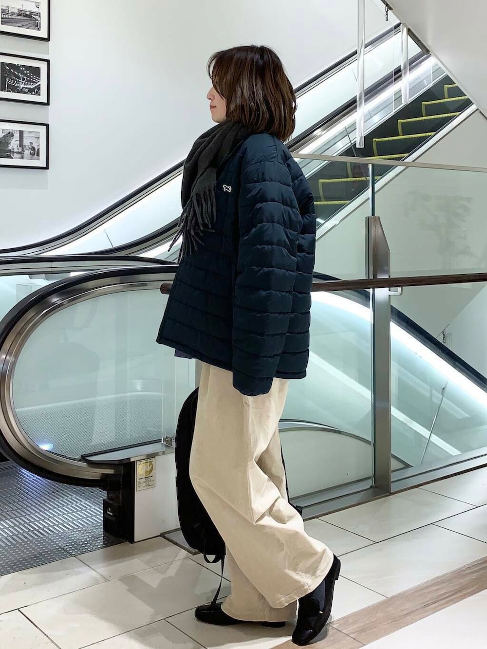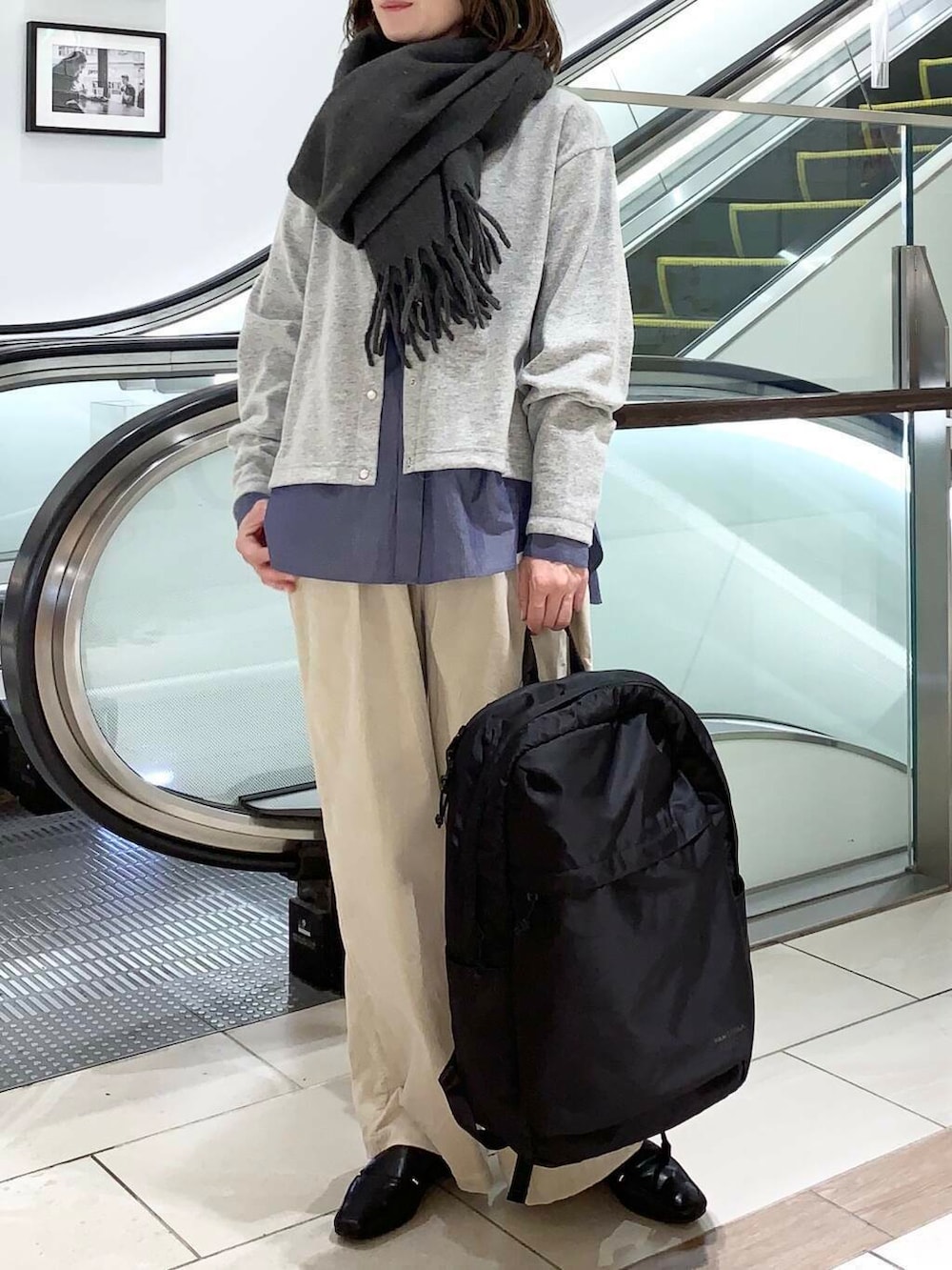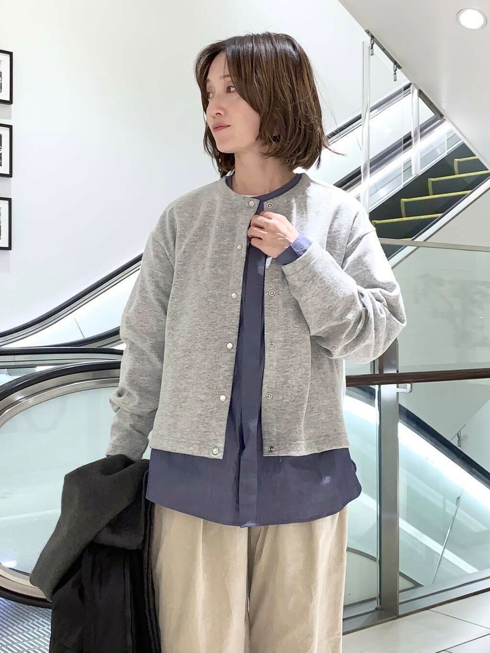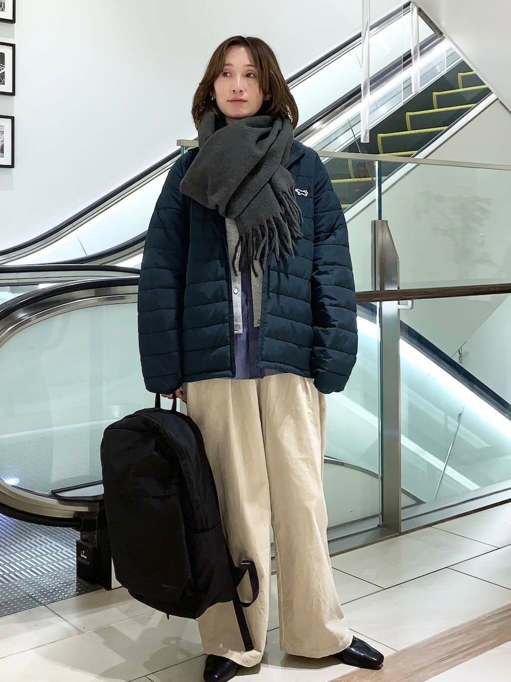 メンズラインですが、女性でもオーバーサイズダウンとして着られます!今回はMサイズでゆるゆるに羽織りました。シンプルなものを合わす時に、色んなサイズ感のものを組み合わせるパターンも楽しいです!軽くて柔らかいので、デイリーに気軽に着用できそうです😊
