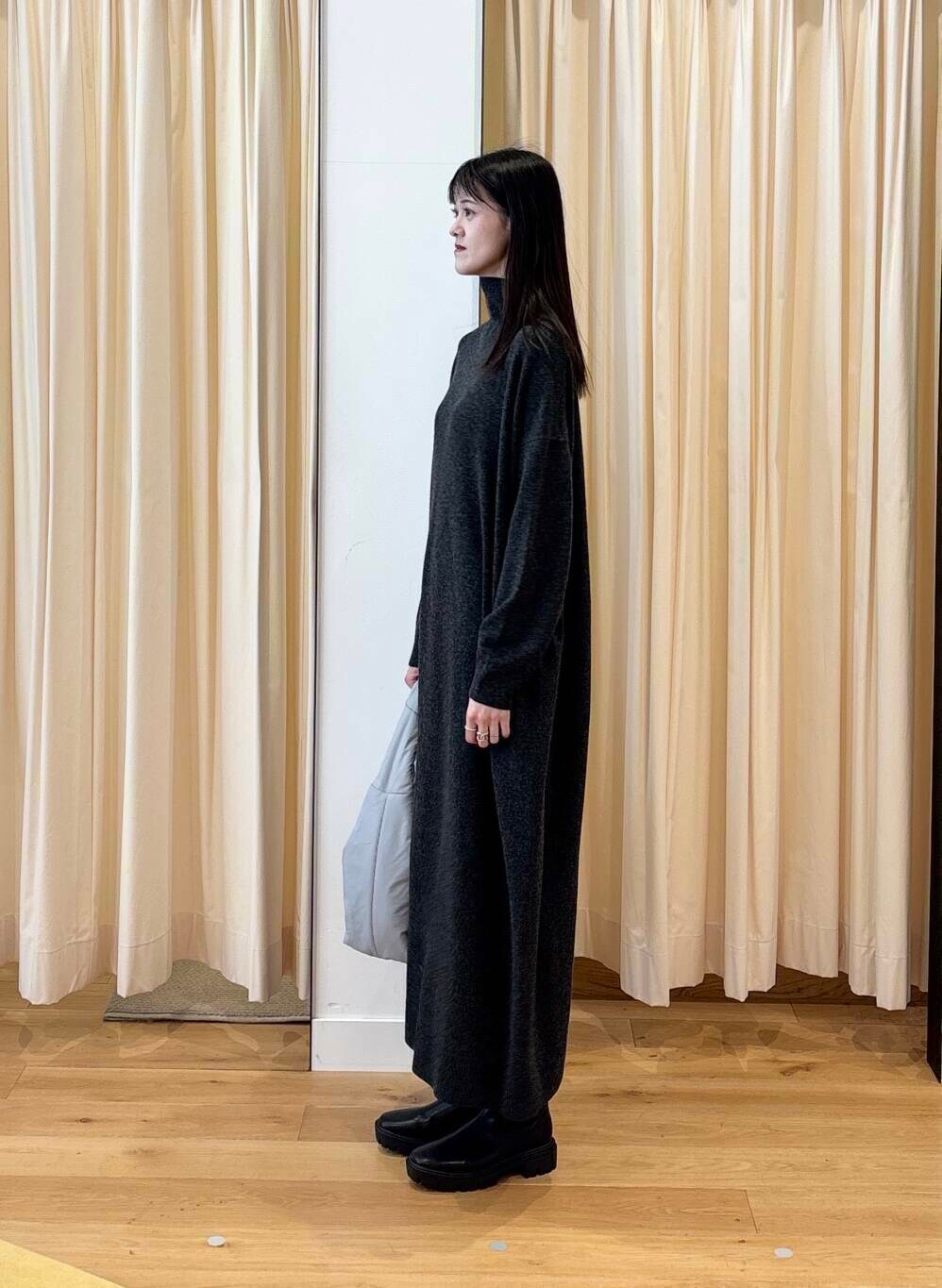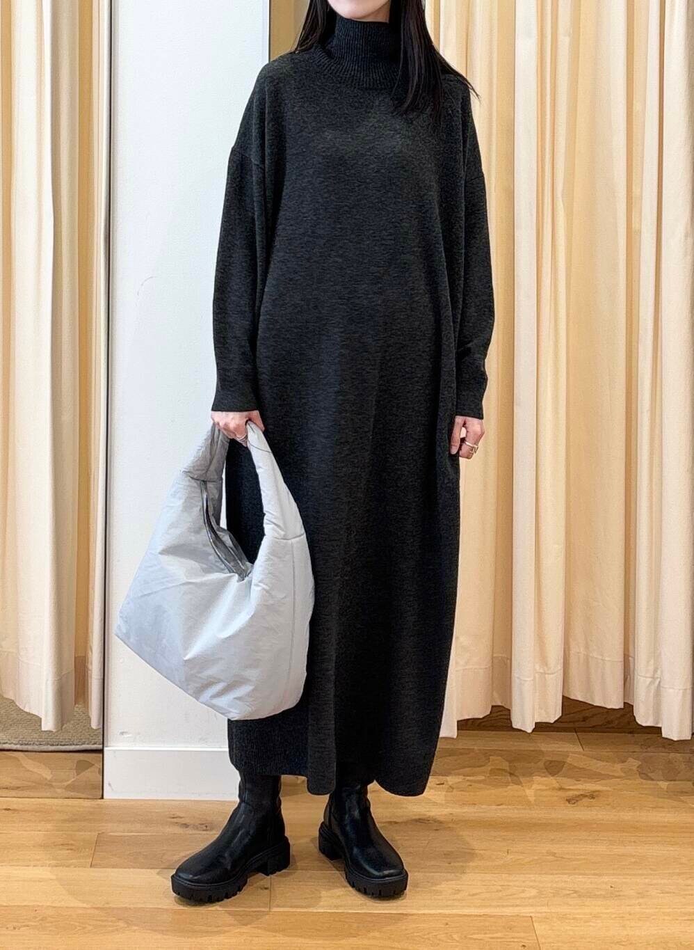 しっかり長さのロング丈が魅力的なニットワンピースです。
