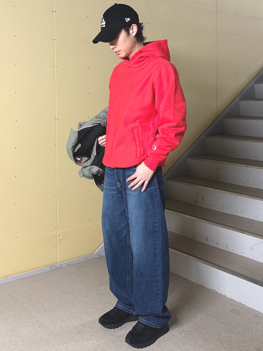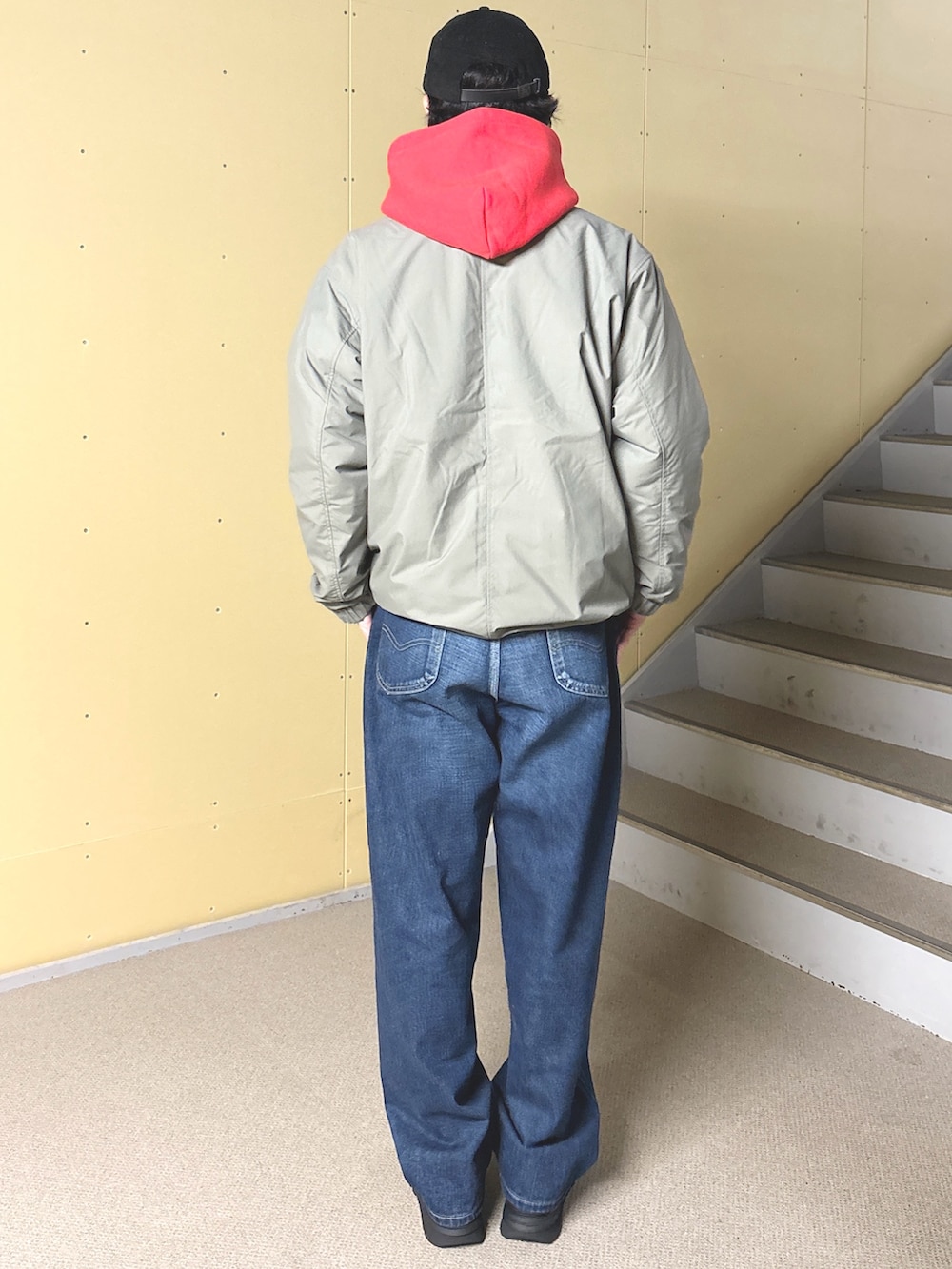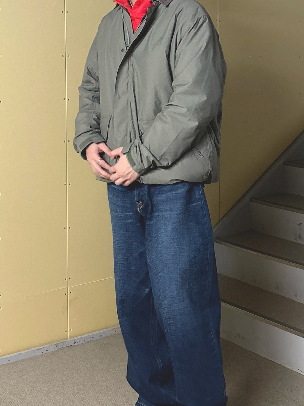アウターのマーモットとの別注のアウターはそこまで分厚い訳ではありませんが、とても暖かく、形もたっぷりとした形なのでどんなコーディネートにも合うと思います!