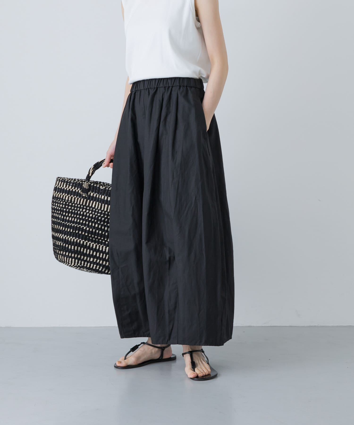 再入荷です!綿のパリッとした風合いも残しつつ、コクーンシルエットで女性らしさも満載のスカート🖤ふんわりし過ぎていないデザインも可愛らしいです!