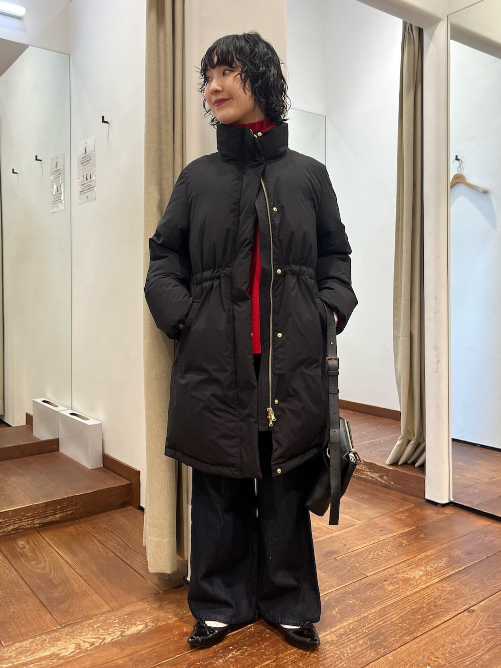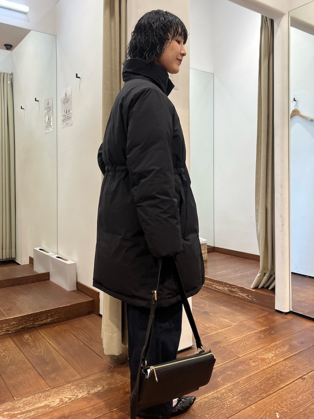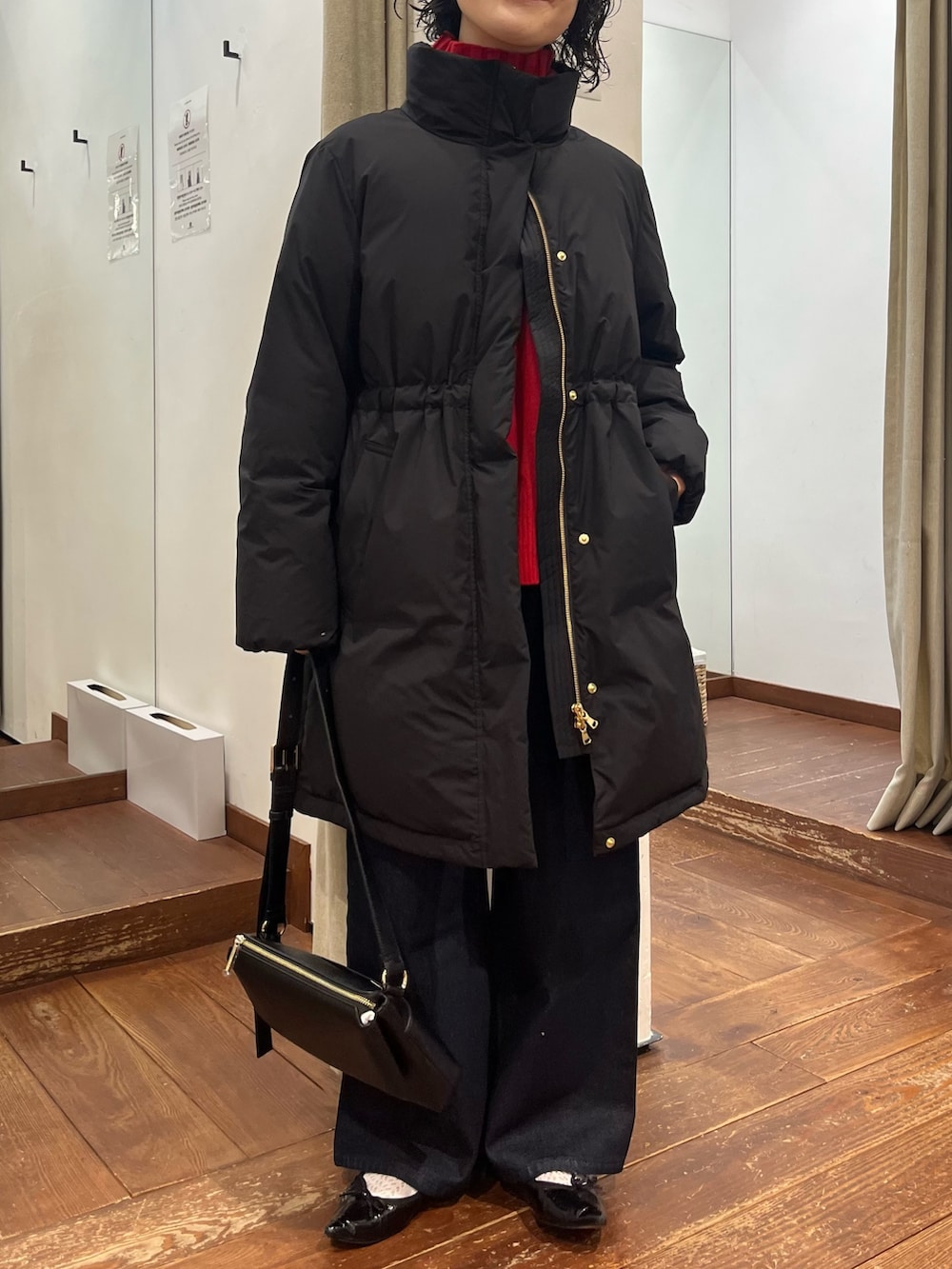 ウエストと裾にあるドローコードを絞るとキュッと女性らしさのあるシルエットに変化します😳