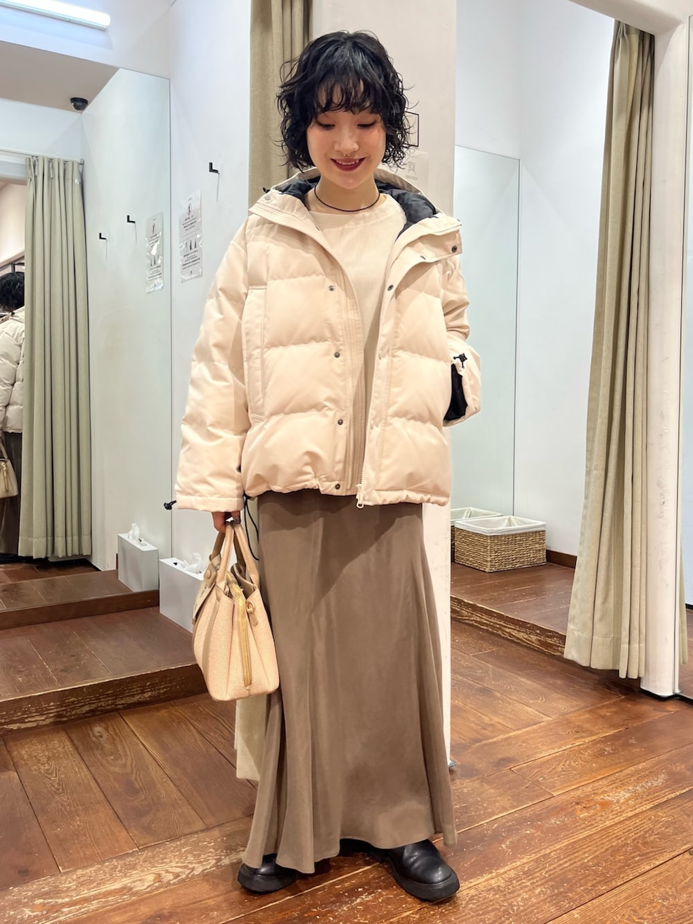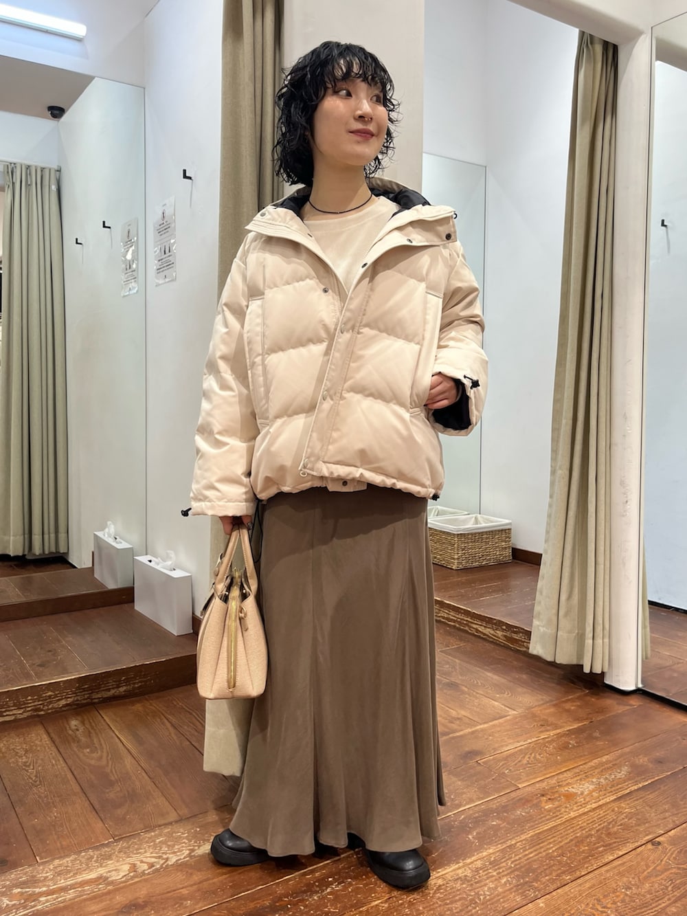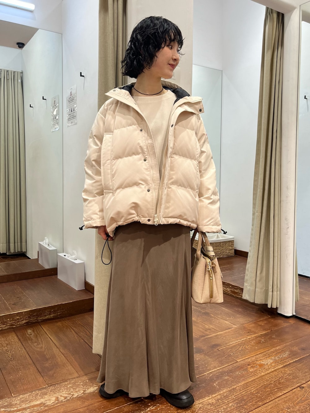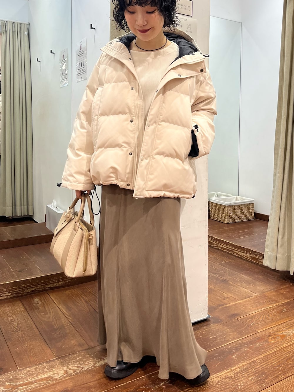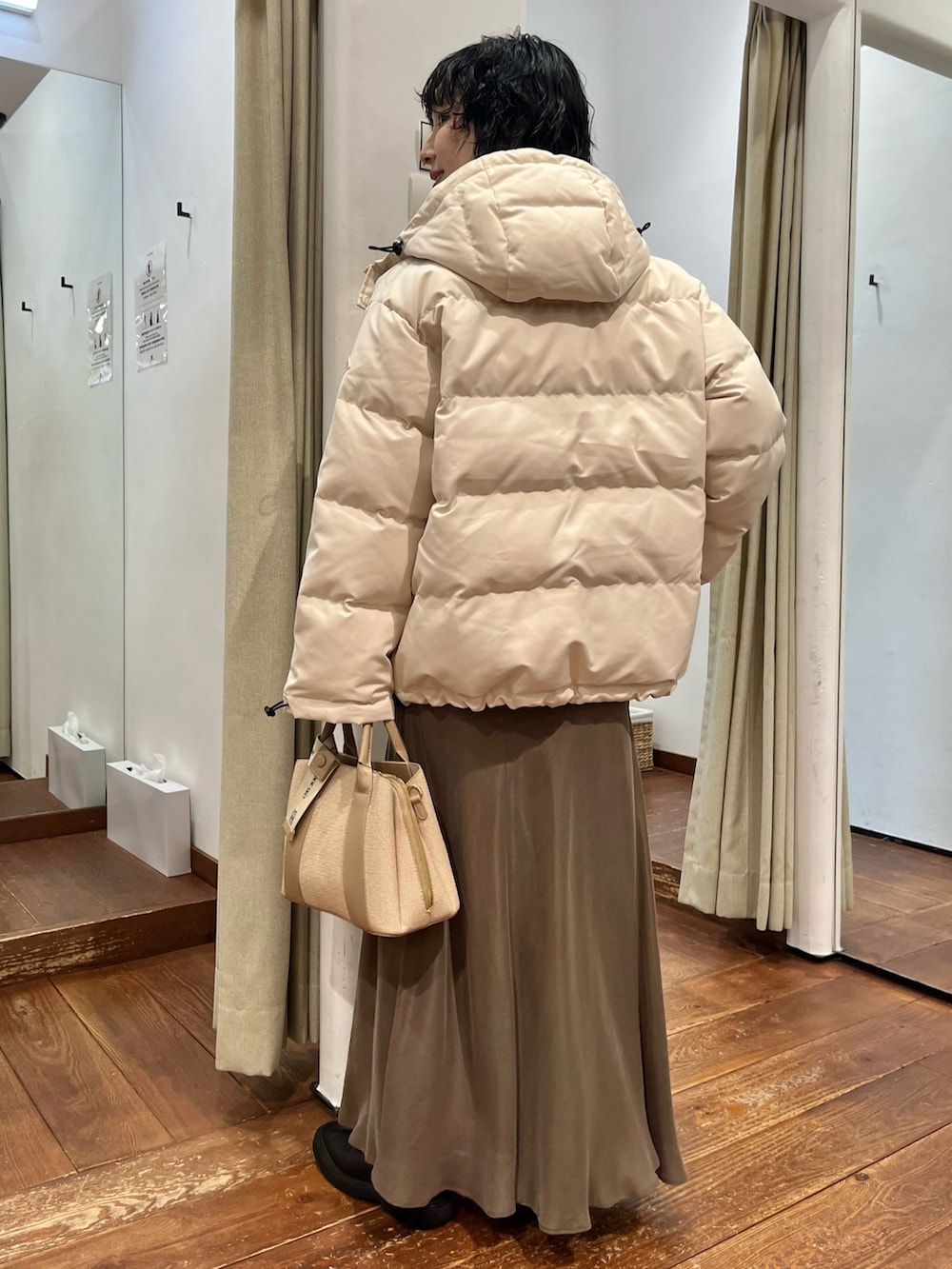 私が着用しているXSサイズは、ダウン特有の広がりは少なく、裾を絞るとよりスッキリします。