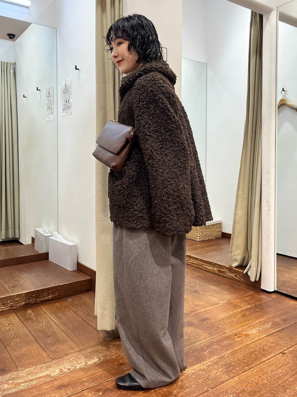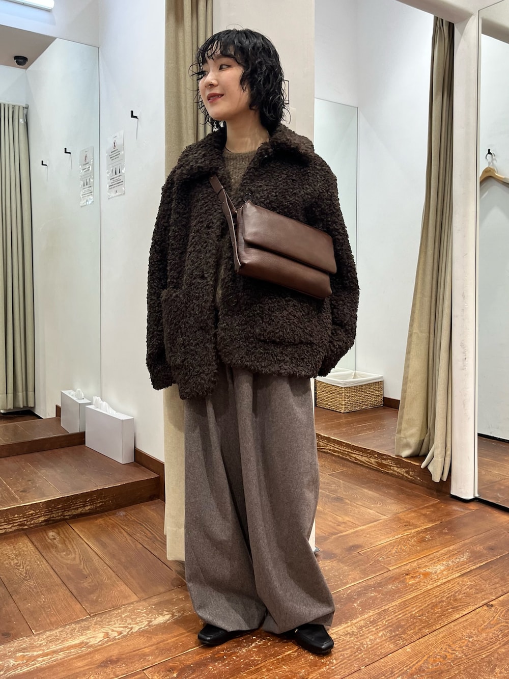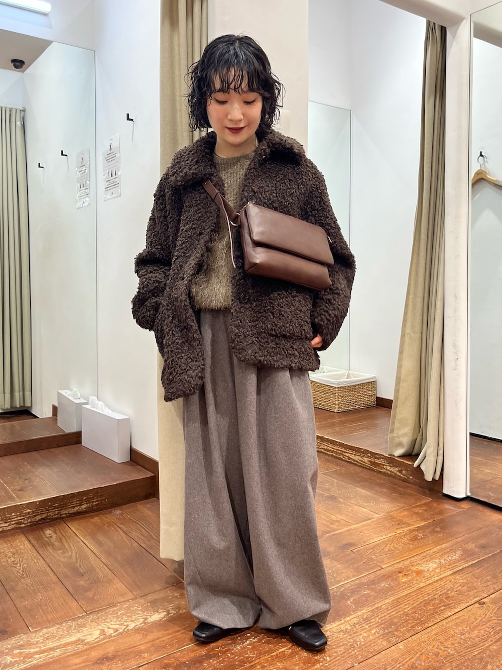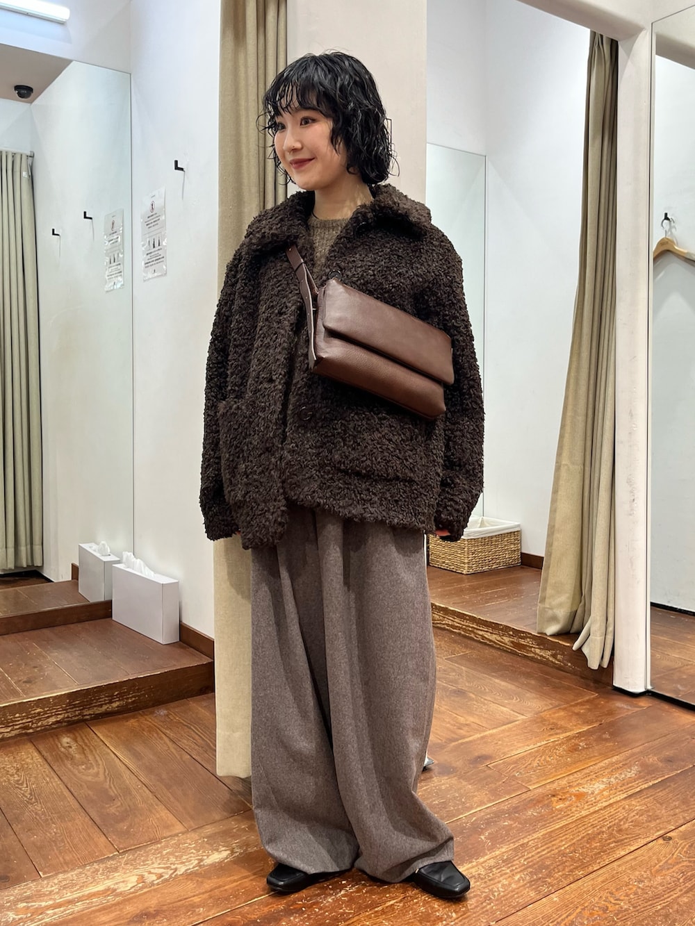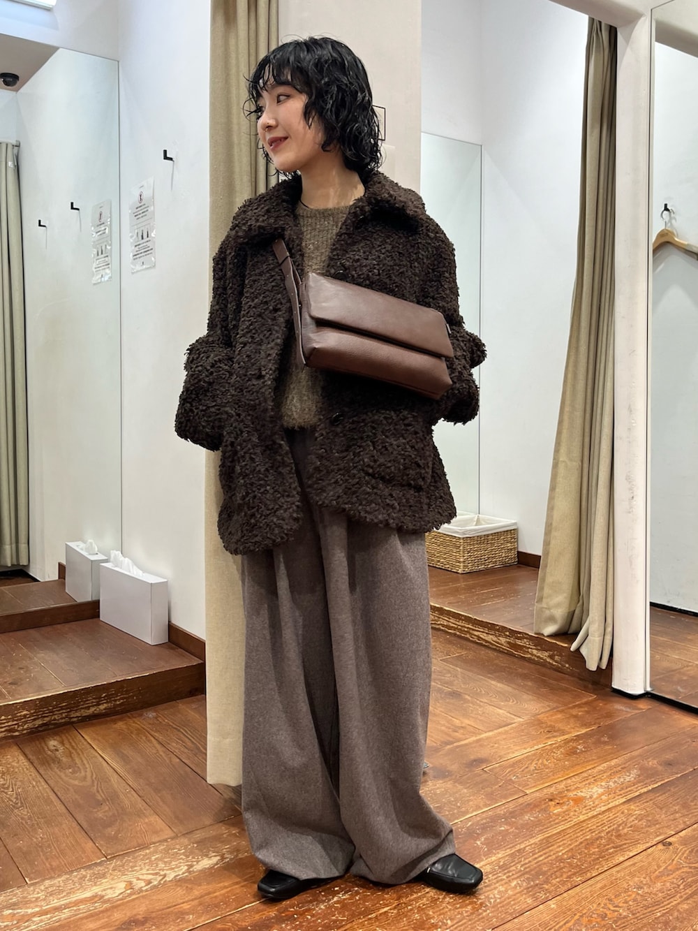 ざっくりオーバーなサイズ感が可愛らしいです。オールブラウンのトレンドカラーコーデでまとめてみました🤎