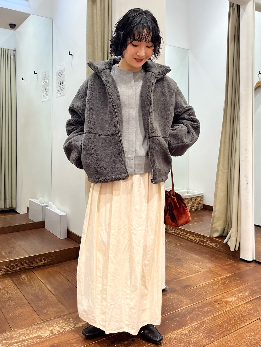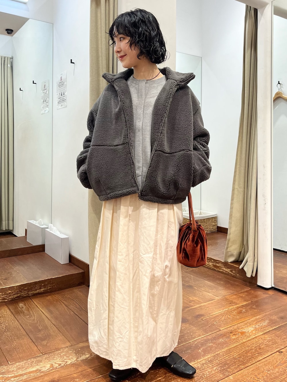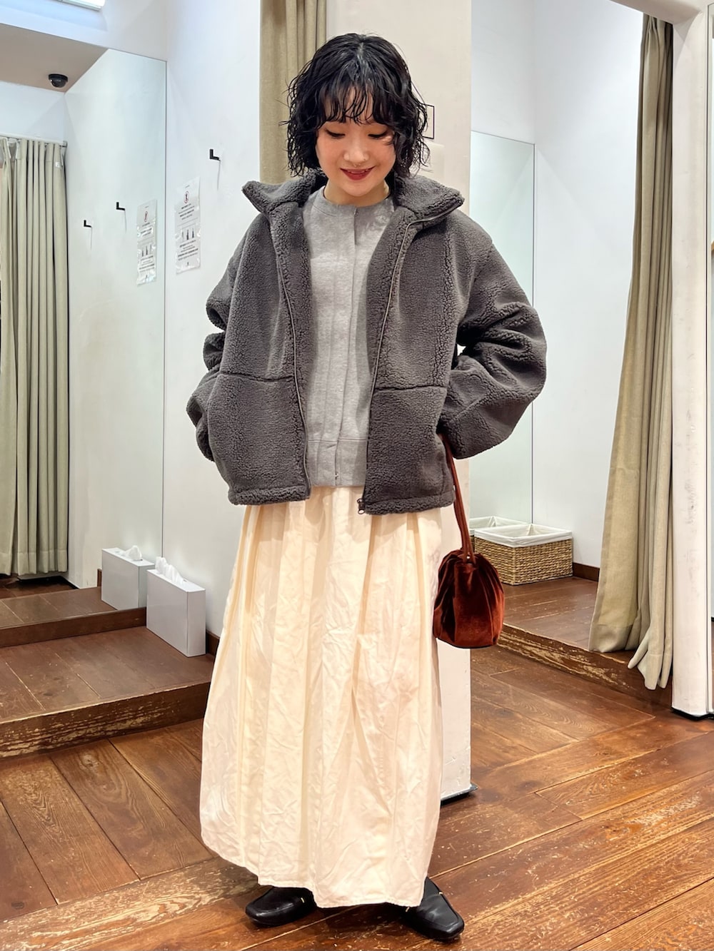 スタンドカラーにするとマフラー無しでも充分暖かいです。スカートと合わせて抜け感ある雰囲気でも着ていただけますし、デニムやカジュアルアイテムでも🤲🏼