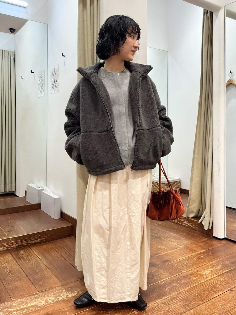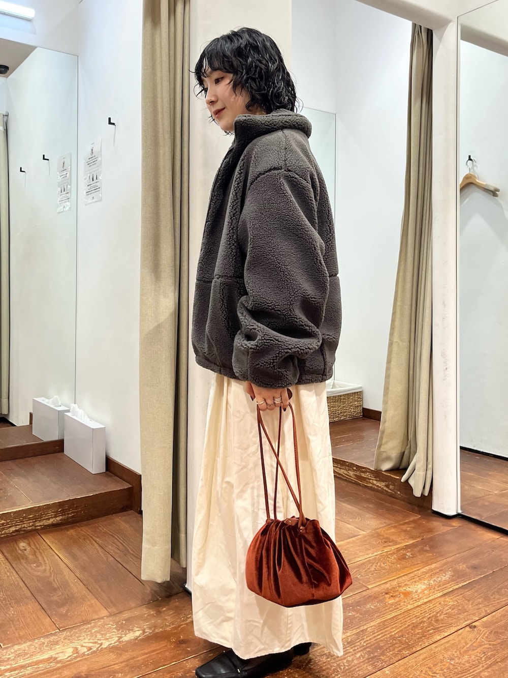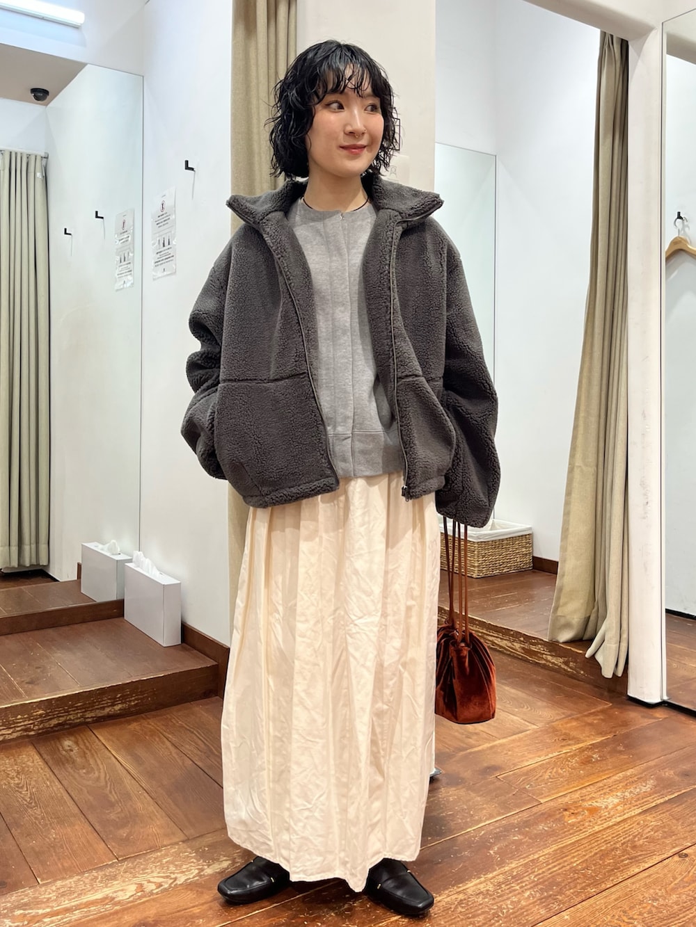 スタンドカラーにするとマフラー無しでも充分暖かいです。スカートと合わせて抜け感ある雰囲気でも着ていただけますし、デニムやカジュアルアイテムでも🤲🏼