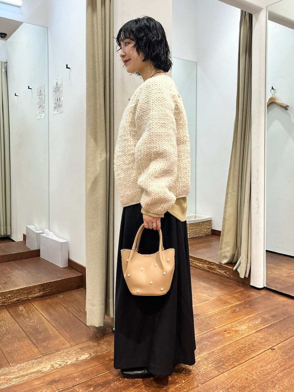 マットなブラックなので、少し甘めカラーとあわせてバランス良く着用いただけそうです◎