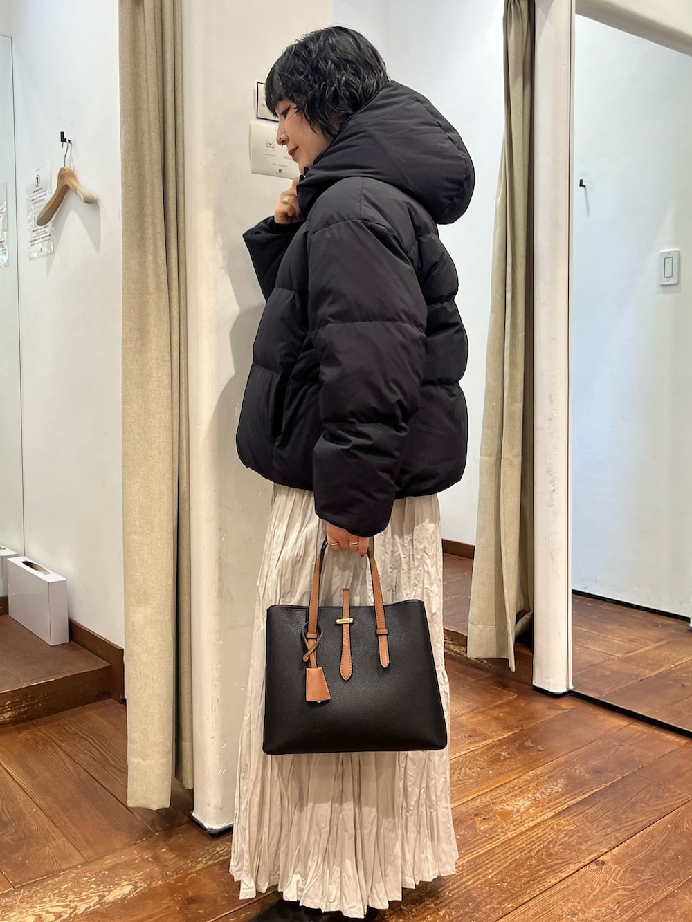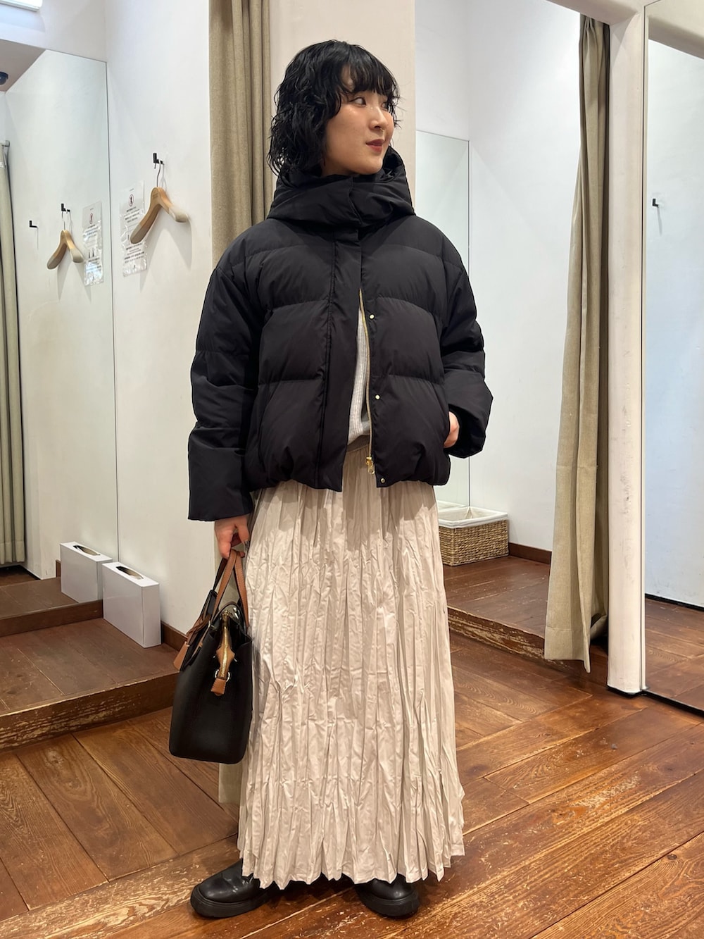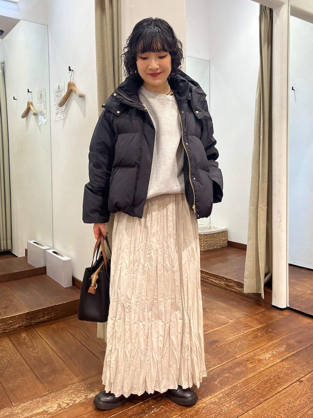 ジップ×フラップなので防風機能も優れています。マットゴールドな金具が、ダウンでもより女性らしい印象を強くしてくれます✨️