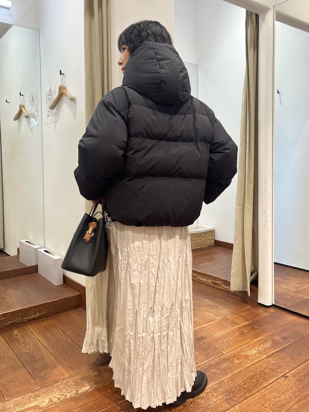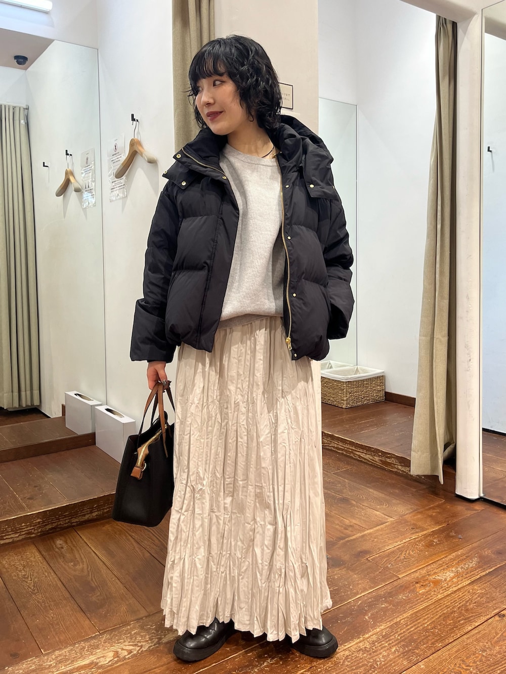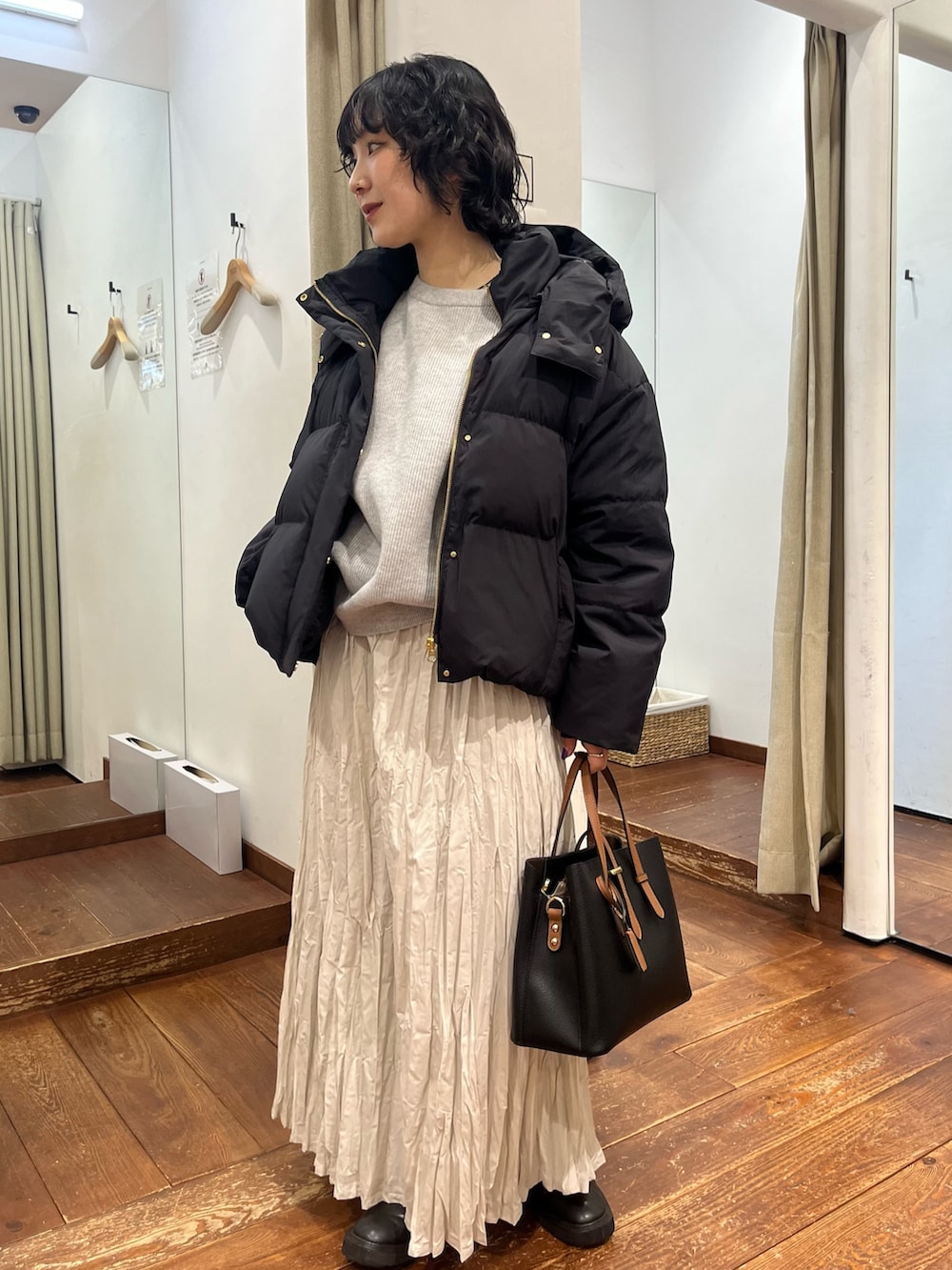 ジップ×フラップなので防風機能も優れています。マットゴールドな金具が、ダウンでもより女性らしい印象を強くしてくれます✨️