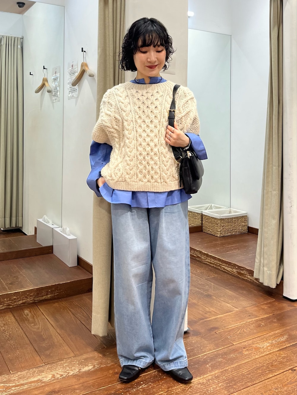 私はすっきりブルーワントーンにニットを差し色としていれてみました!