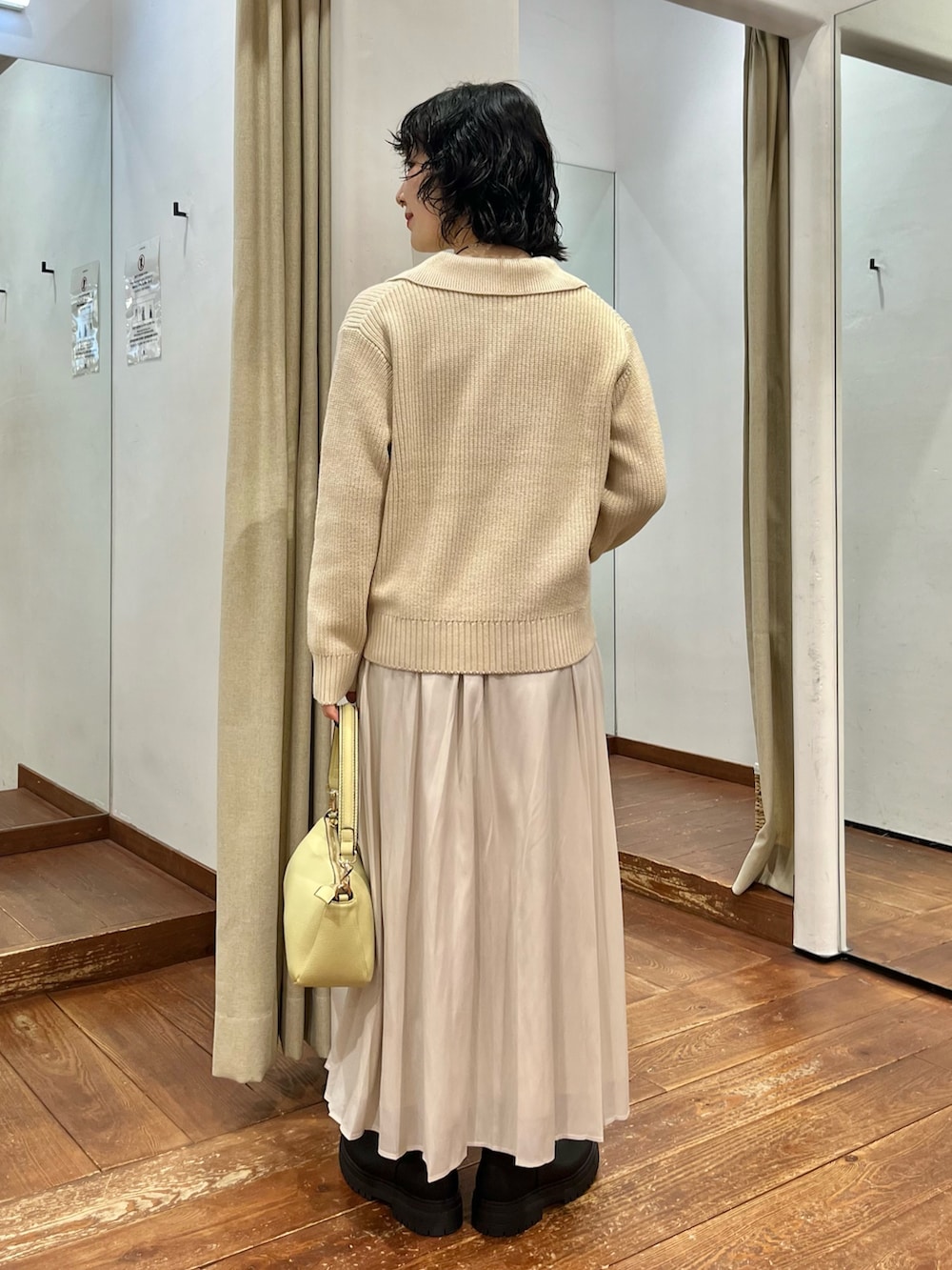 生地感は柔らかく滑らかで、動きが出るとラインがとても綺麗です。