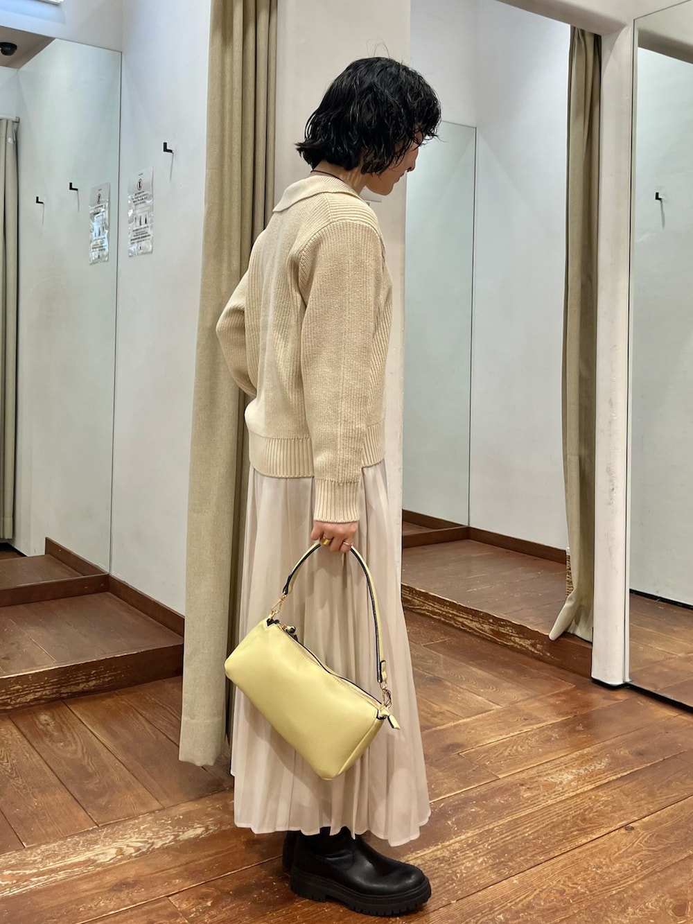 まだ寒いのでニットの上に着ても、衿付きなのでシンプルながら抜け感があって可愛いです🤍
